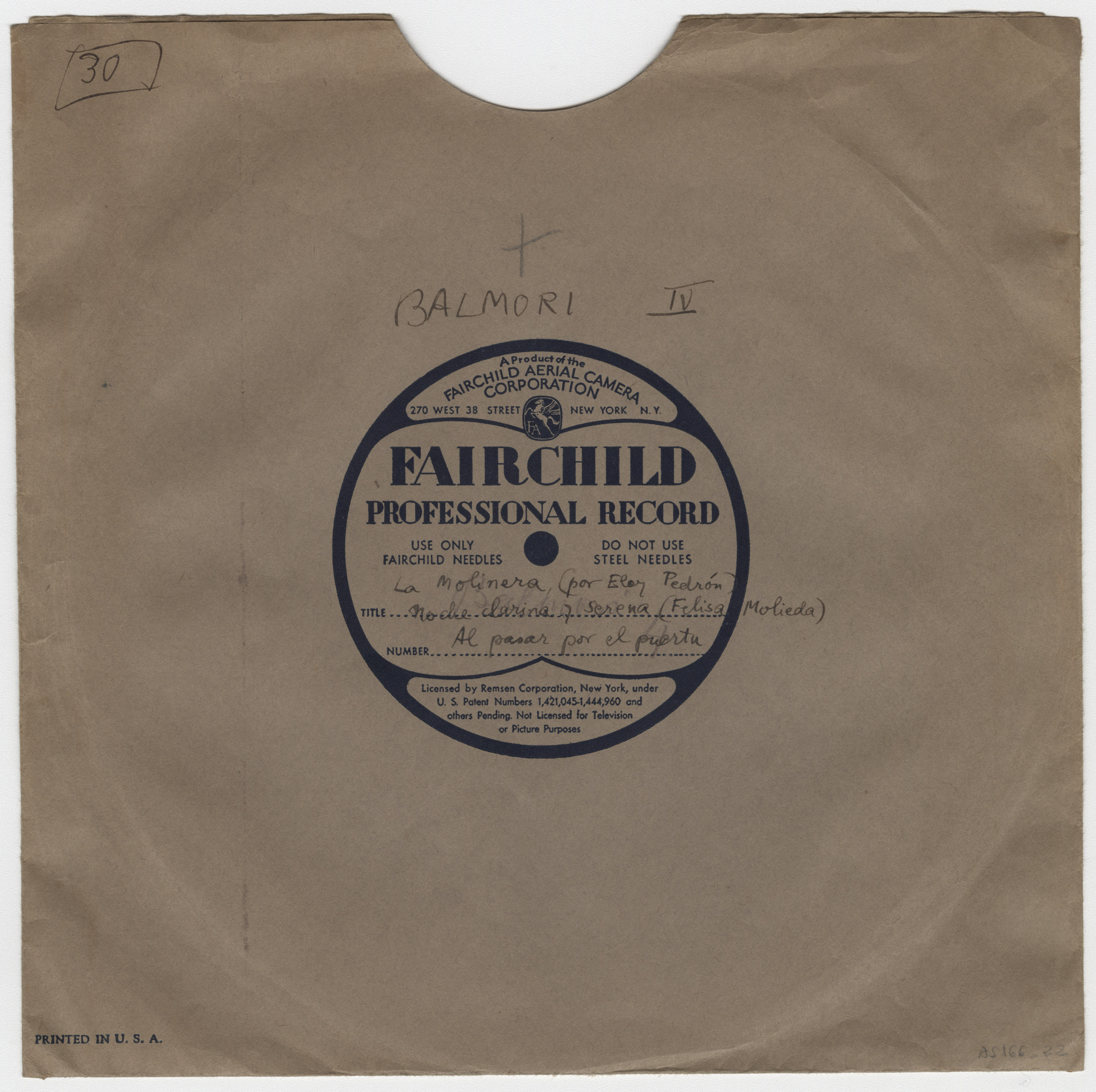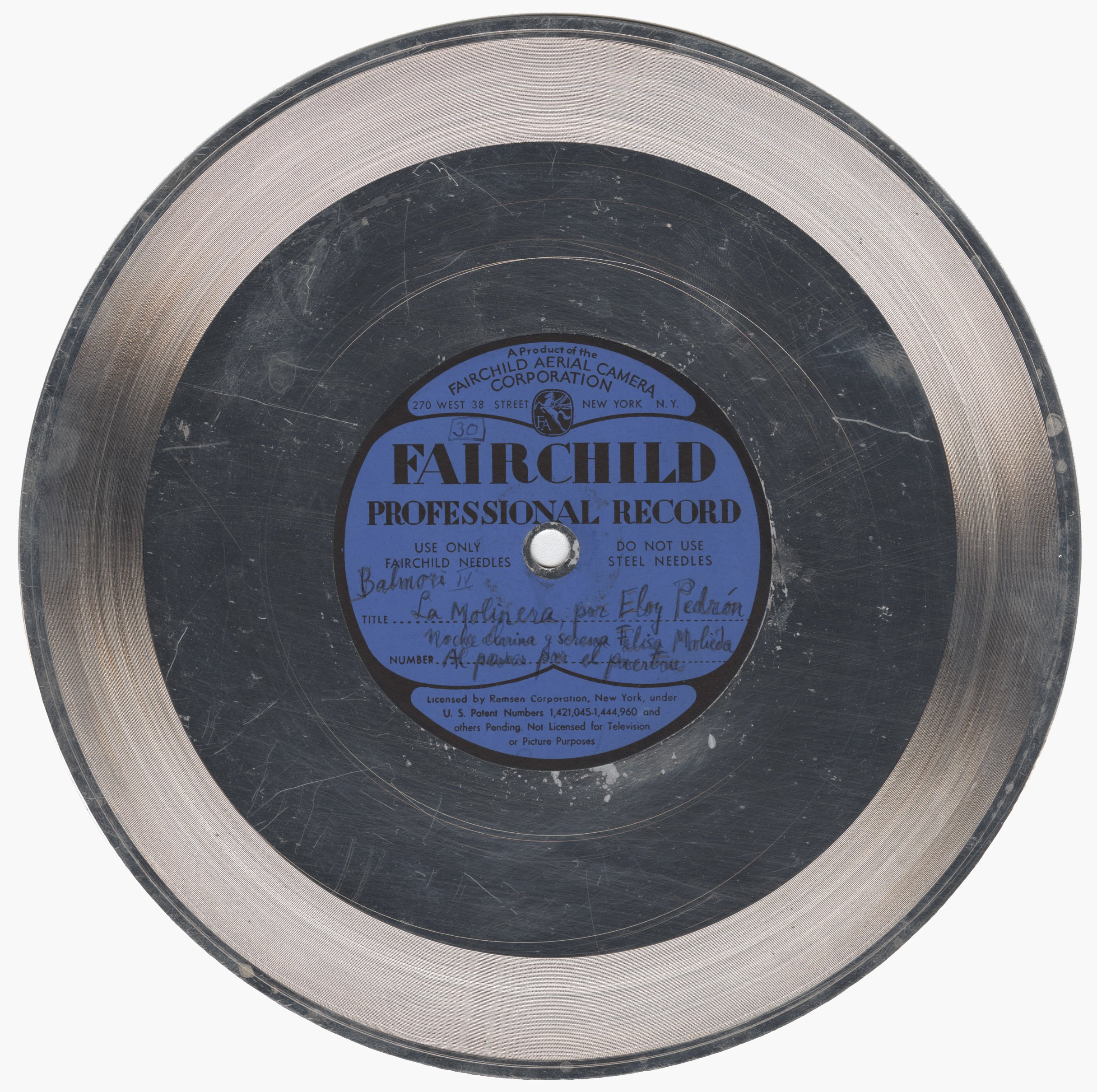 Marca comercial: Fairchild Professional Record (Fairchild Aereal Camera Corporation, New York).