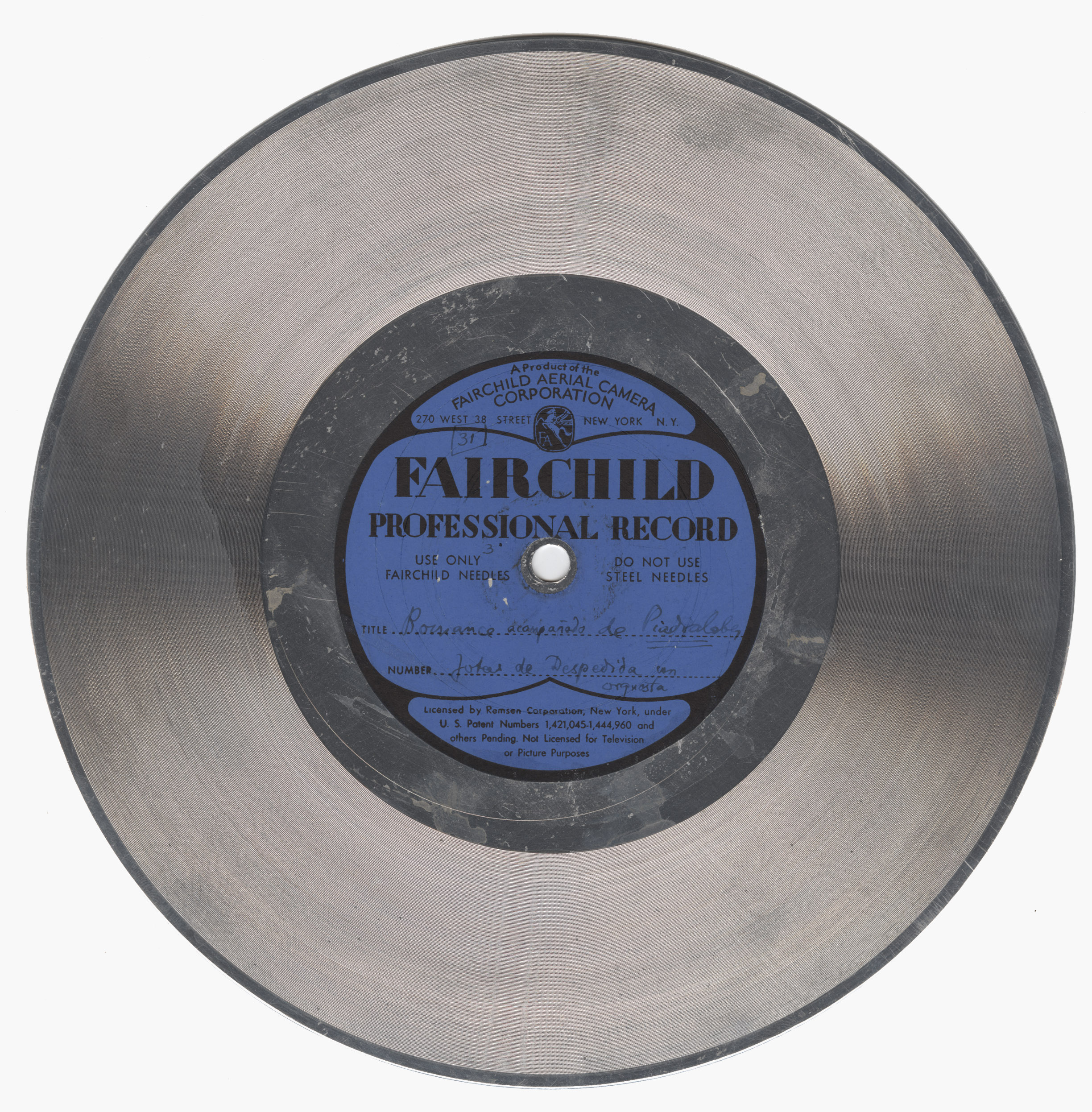 Marca comercial: Fairchild Professional Record (Fairchild Aereal Camera Corporation, New York).