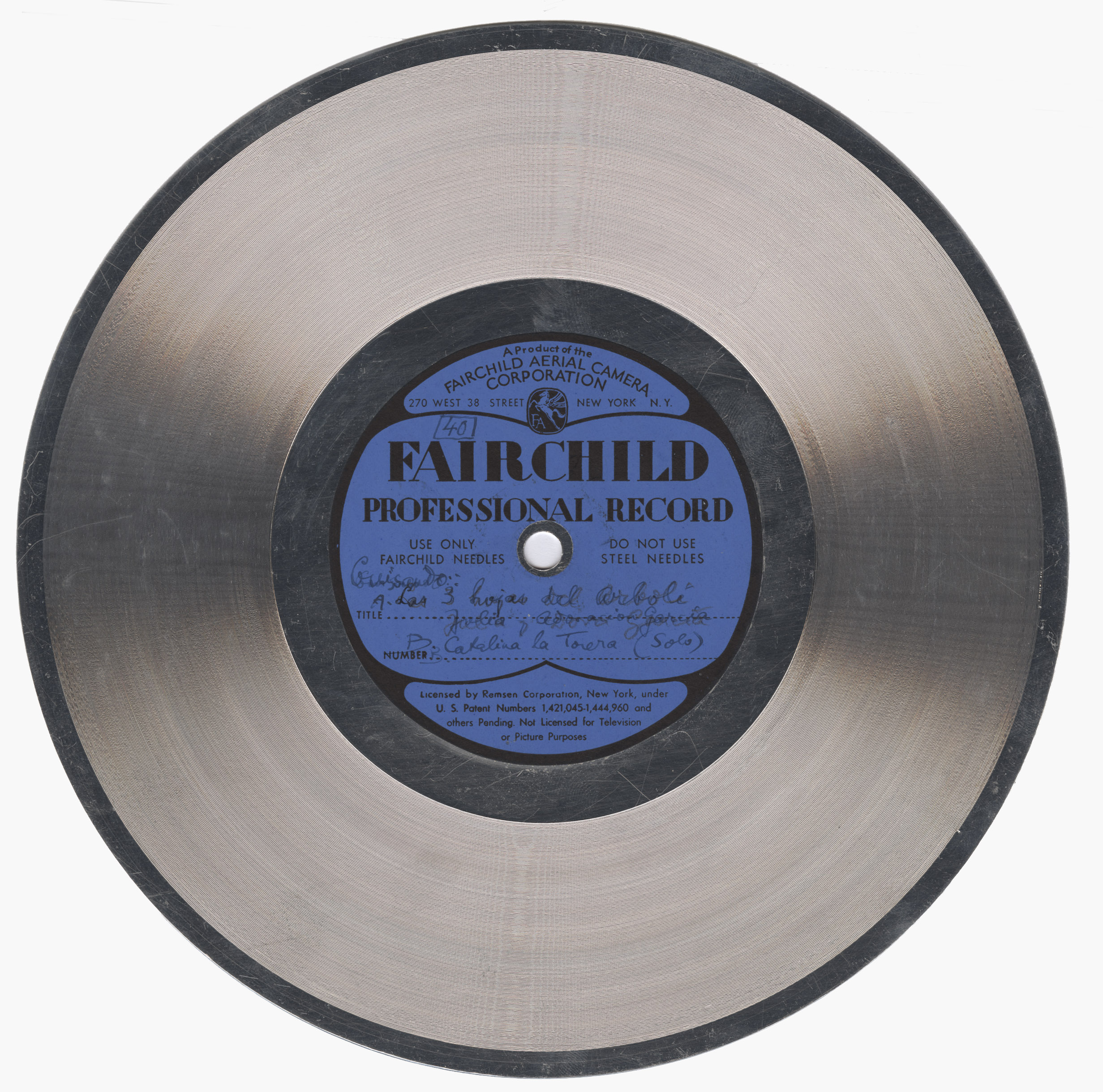 Marca comercial: Fairchild Professional Record (Fairchild Aereal Camera Corporation, New York).