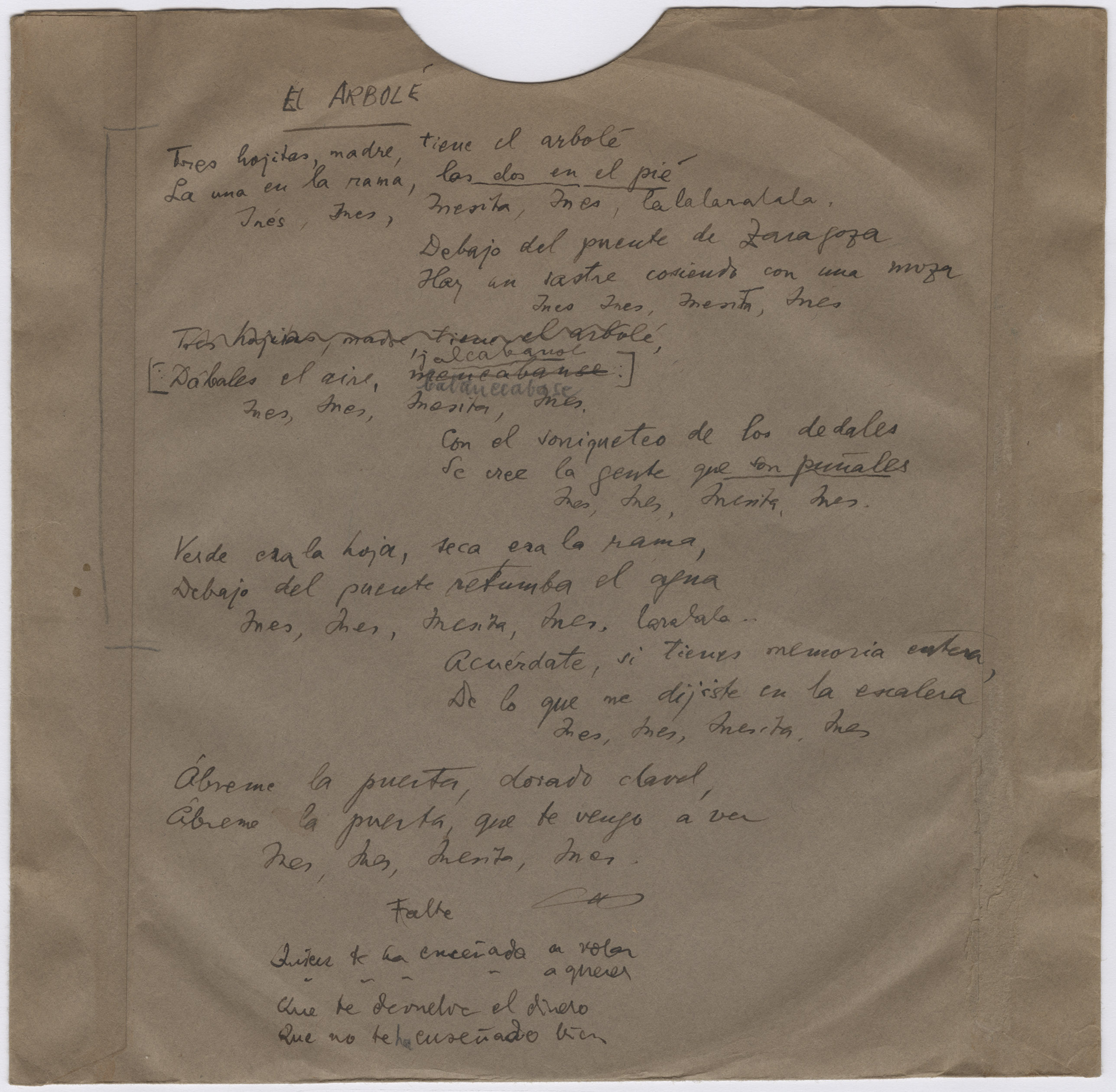 Las tres hojas del arbolé (Título procedente de la transcripción directa del disco)