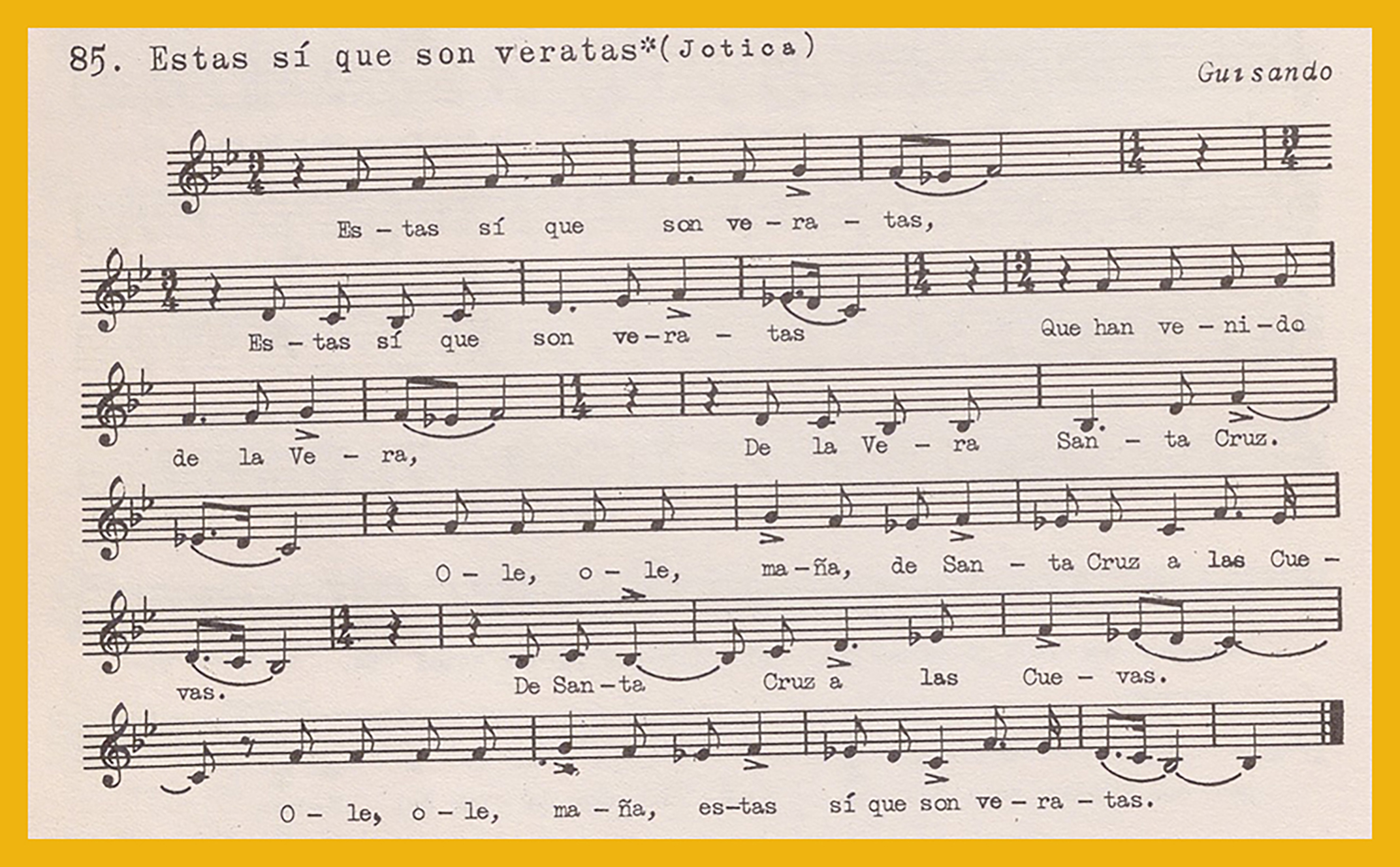 Ref. Partitura transcripción Kurt Schindler (1941): A. «El Alcalde» y «Estas sí que son veratas» registro número nº 84 y número nº 85. B. «Paloma Revoladora», registro número nº 78