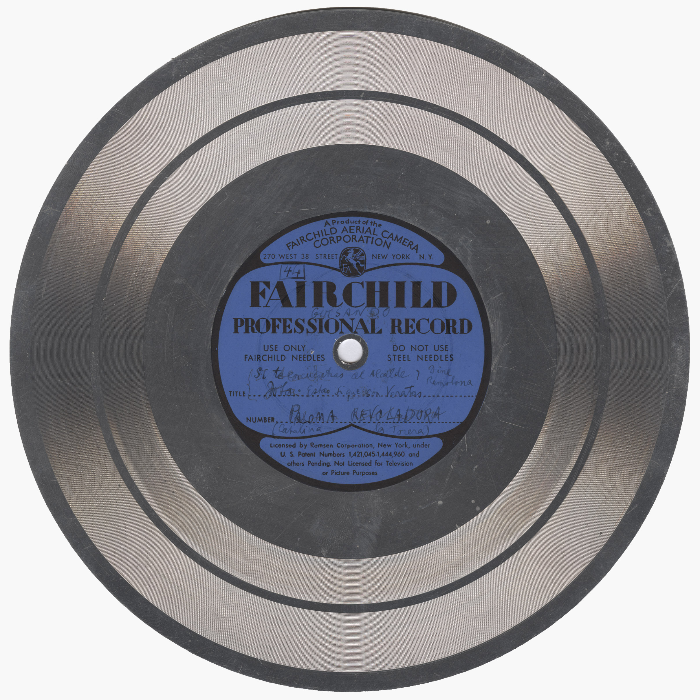 Marca comercial: Fairchild Professional Record (Fairchild Aereal Camera Corporation, New York).