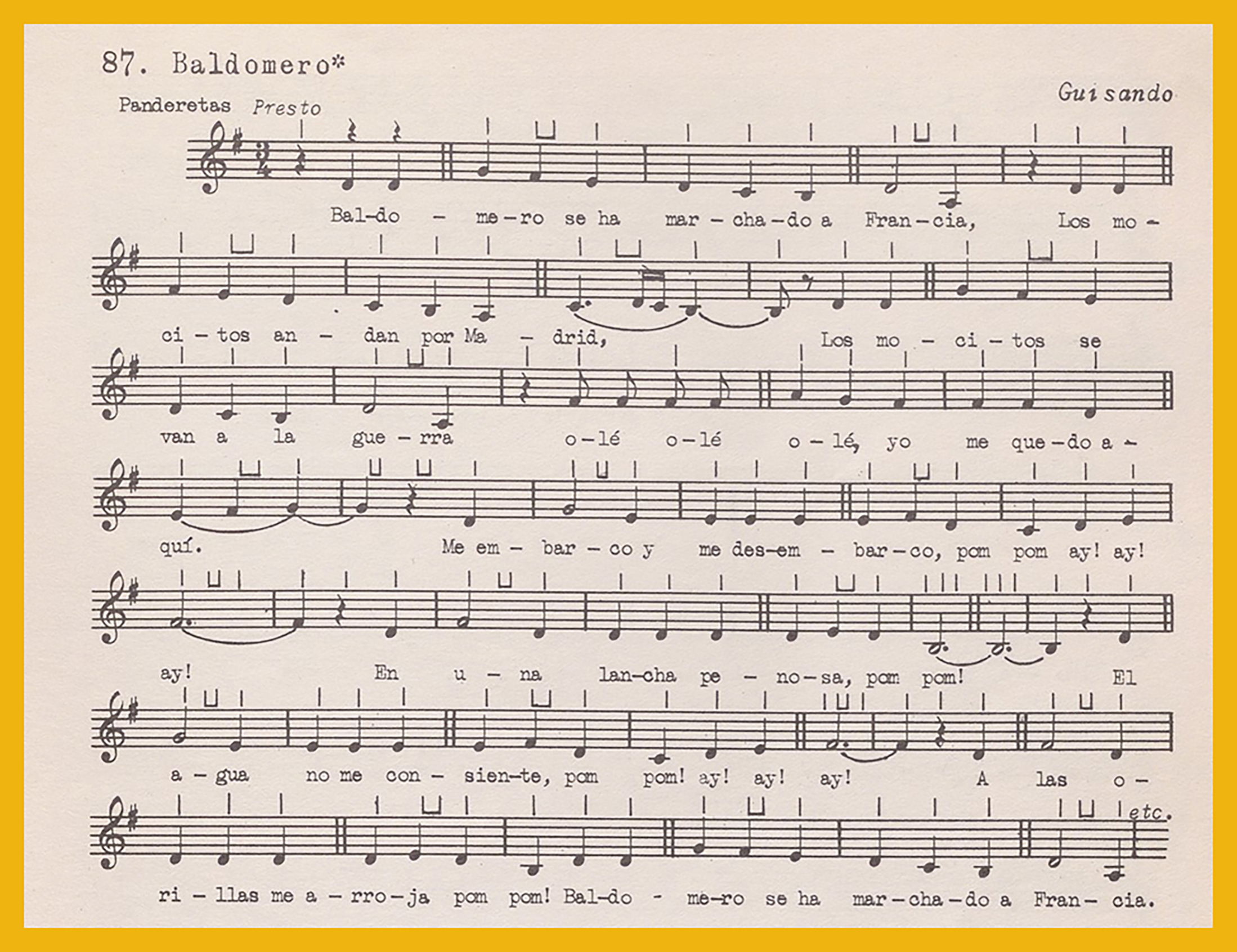 Ref. Partitura transcripción Kurt Schindler (1941): A. «No quiero tus avellanas», registro nº 86. B. «Baldomero», registro número nº 87