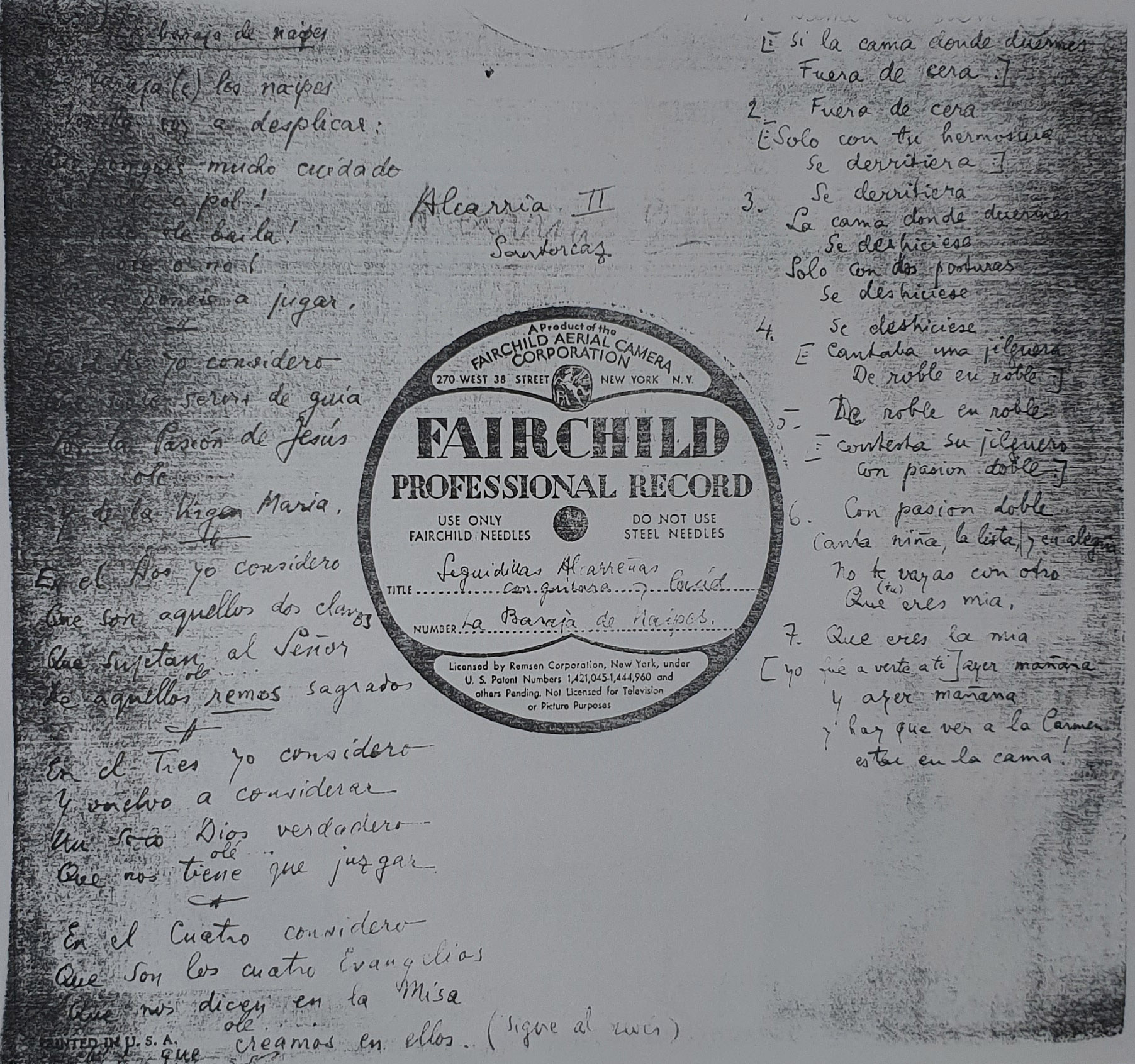 Seguidillas alcarreñas, con guitarra y laúd (Título procedente de la transcripción directa del disco)