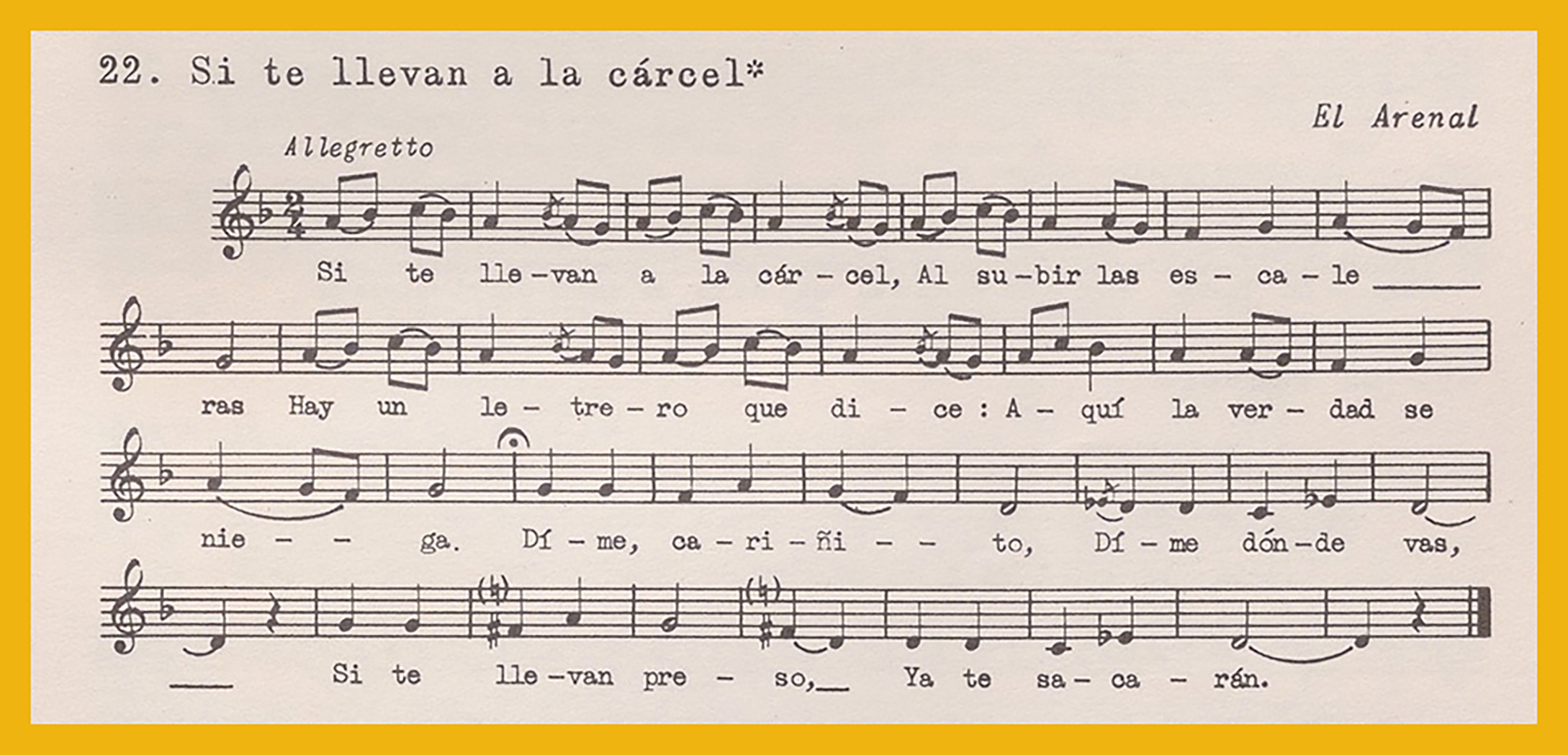 Ref. Partitura transcripción Kurt Schindler (1941): A. «Si te llevan a la cárcel», registro nº 22. B. «Dices que no me quieres», registro nº 23