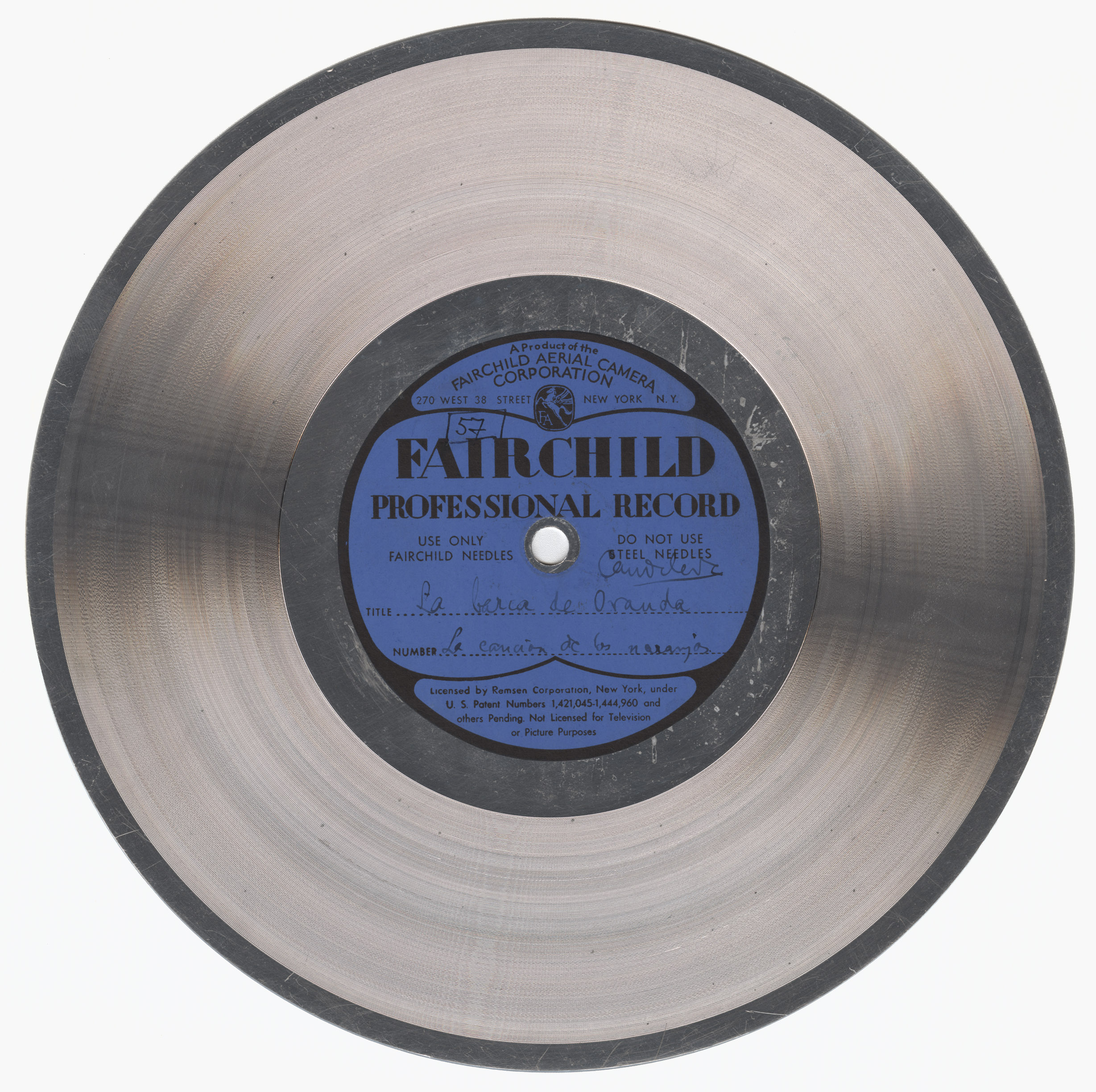 Marca comercial: Fairchild Professional Record (Fairchild Aereal Camera Corporation, New York).