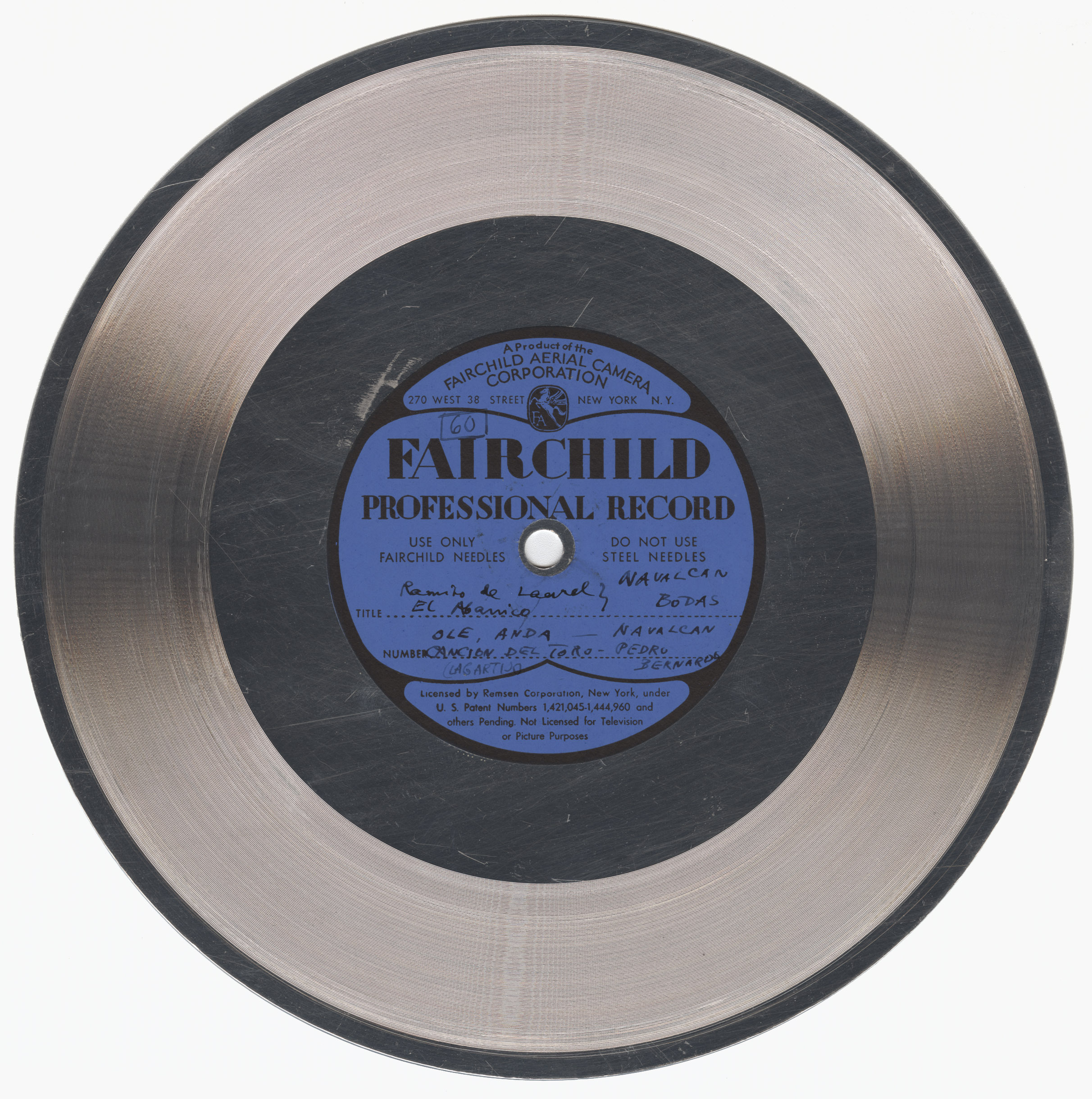 Marca comercial: Fairchild Professional Record (Fairchild Aereal Camera Corporation, New York).