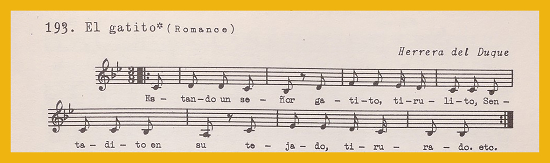 Ref. Partitura transcripción Kurt Schindler (1941): «El gatito (romance)», registro número 193. Indicada como infantil. «La torre de Alicante (Corro)», registro número 194. Indicada como infantil