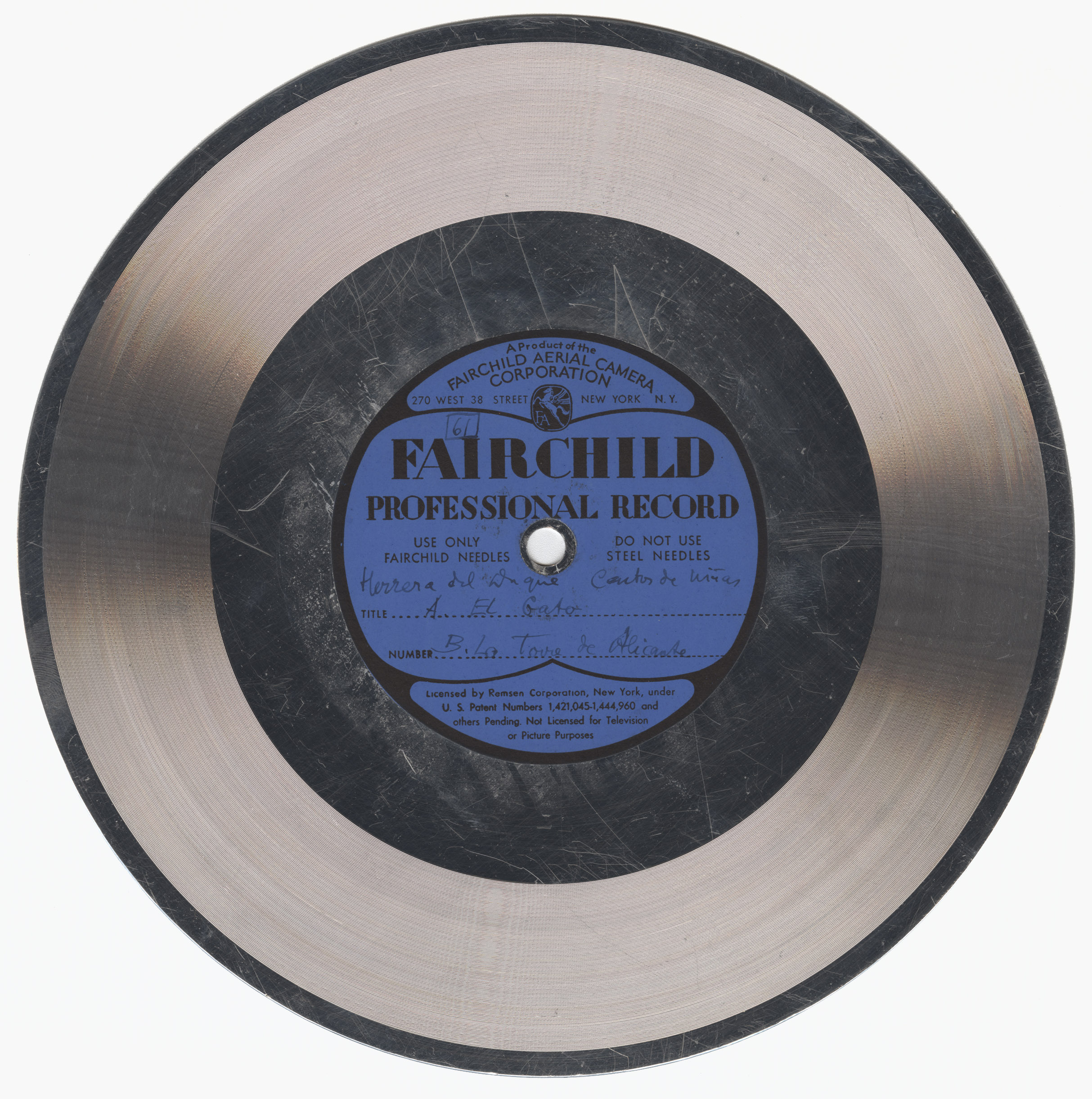Marca comercial: Fairchild Professional Record (Fairchild Aereal Camera Corporation, New York).