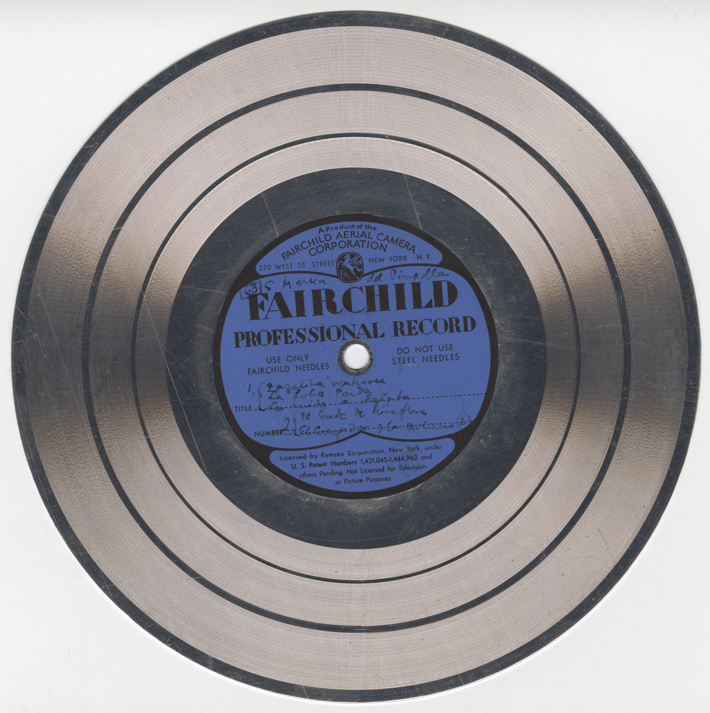 Marca comercial: Fairchild Professional Record (Fairchild Aereal Camera Corporation, New York).