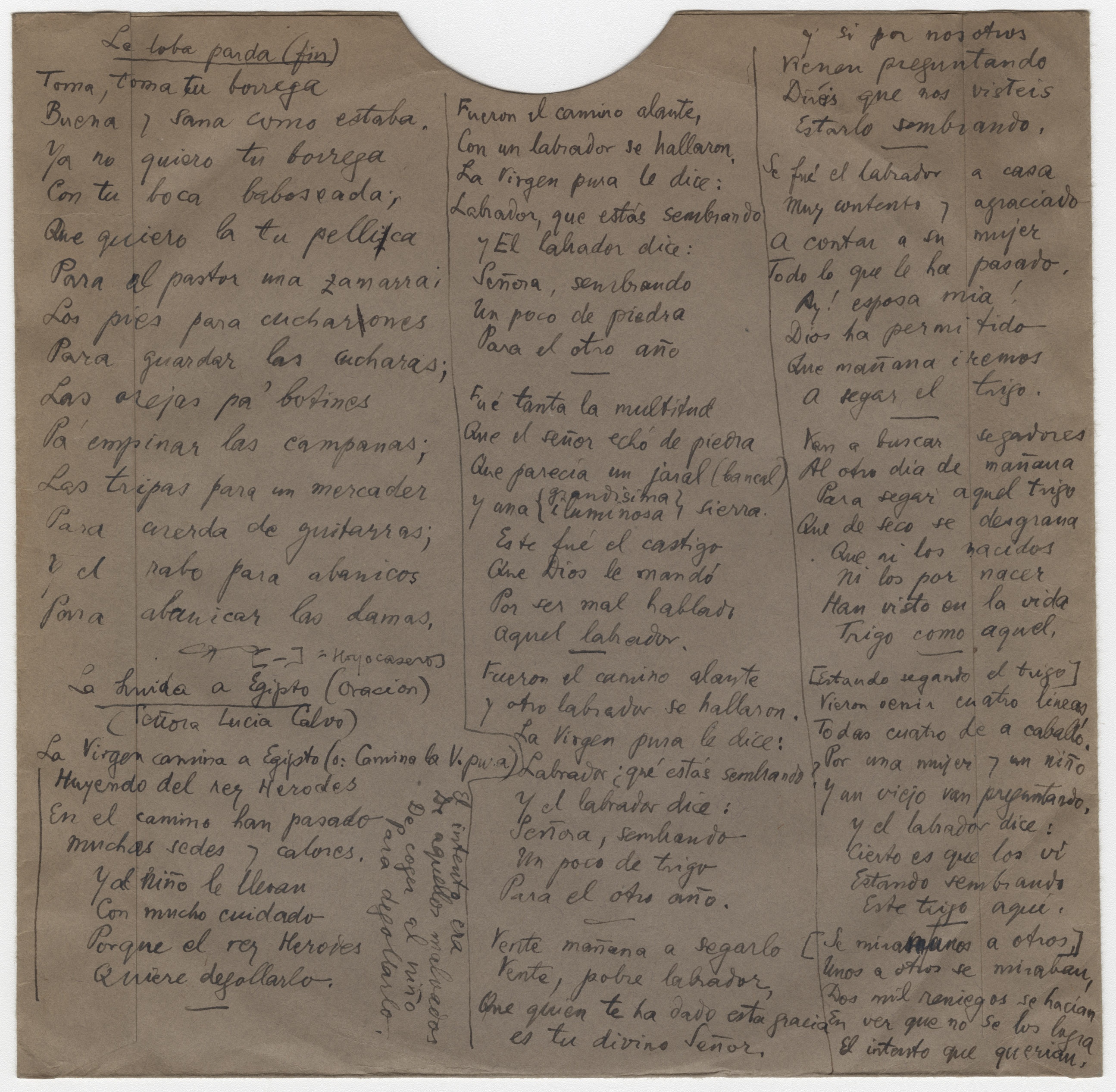 Ref. Partitura transcripción Kurt Schindler (1941): A. «Zagalita venturosa», registro nº 165. «La loba parda (romance)», registro nº 166. «Huida a Egipto», registro nº 167. B. «El Conde Flor», romance con arrabel (sic), registro nº 168. «El corregidor y la molinera», registro 169. «El corregidor y la molinera (versión mejor)», registro nº 170