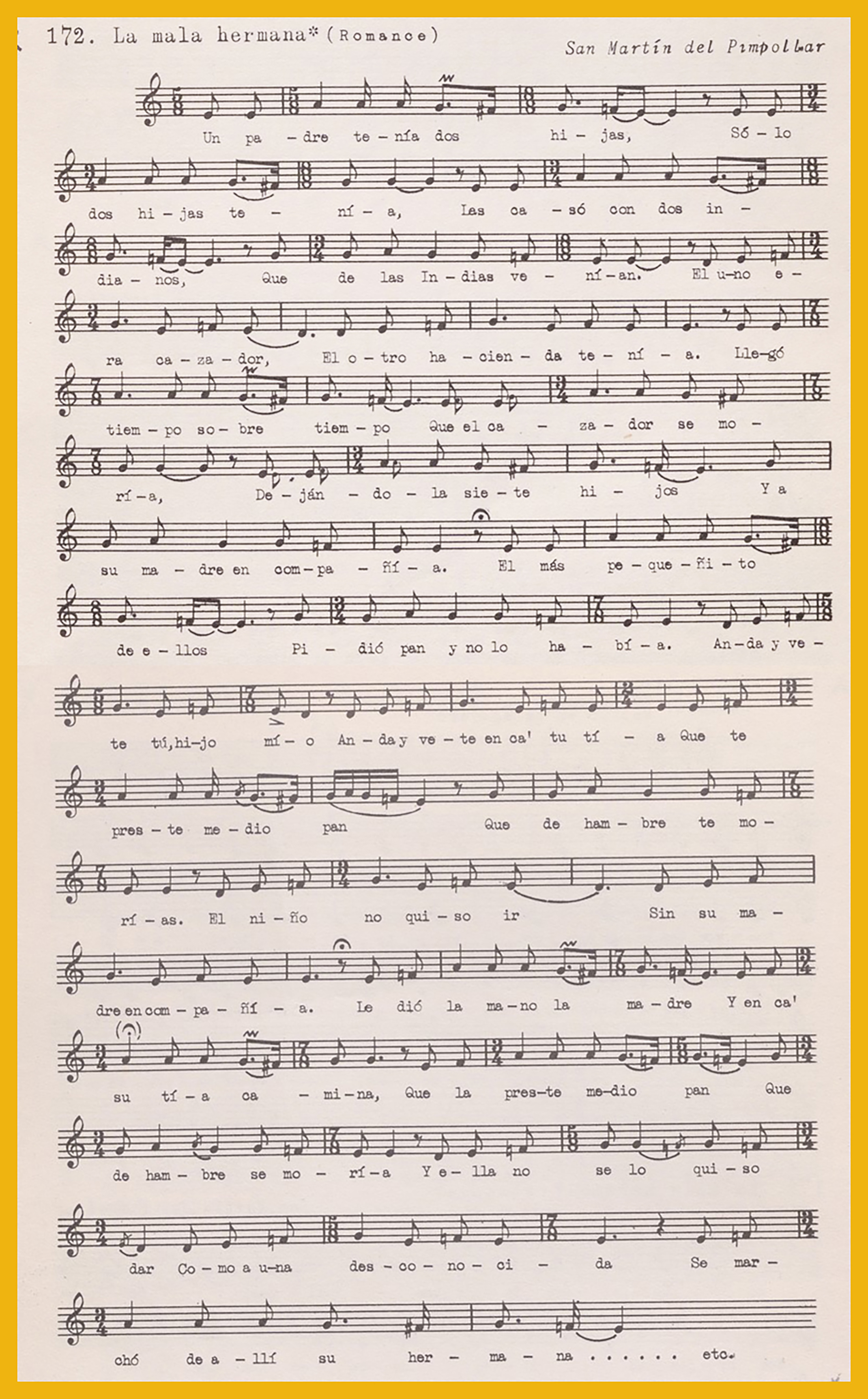 Ref. Partitura transcripción Kurt Schindler (1941): A. No existe registro en partitura. B. «La mala hermana», registro nº 172