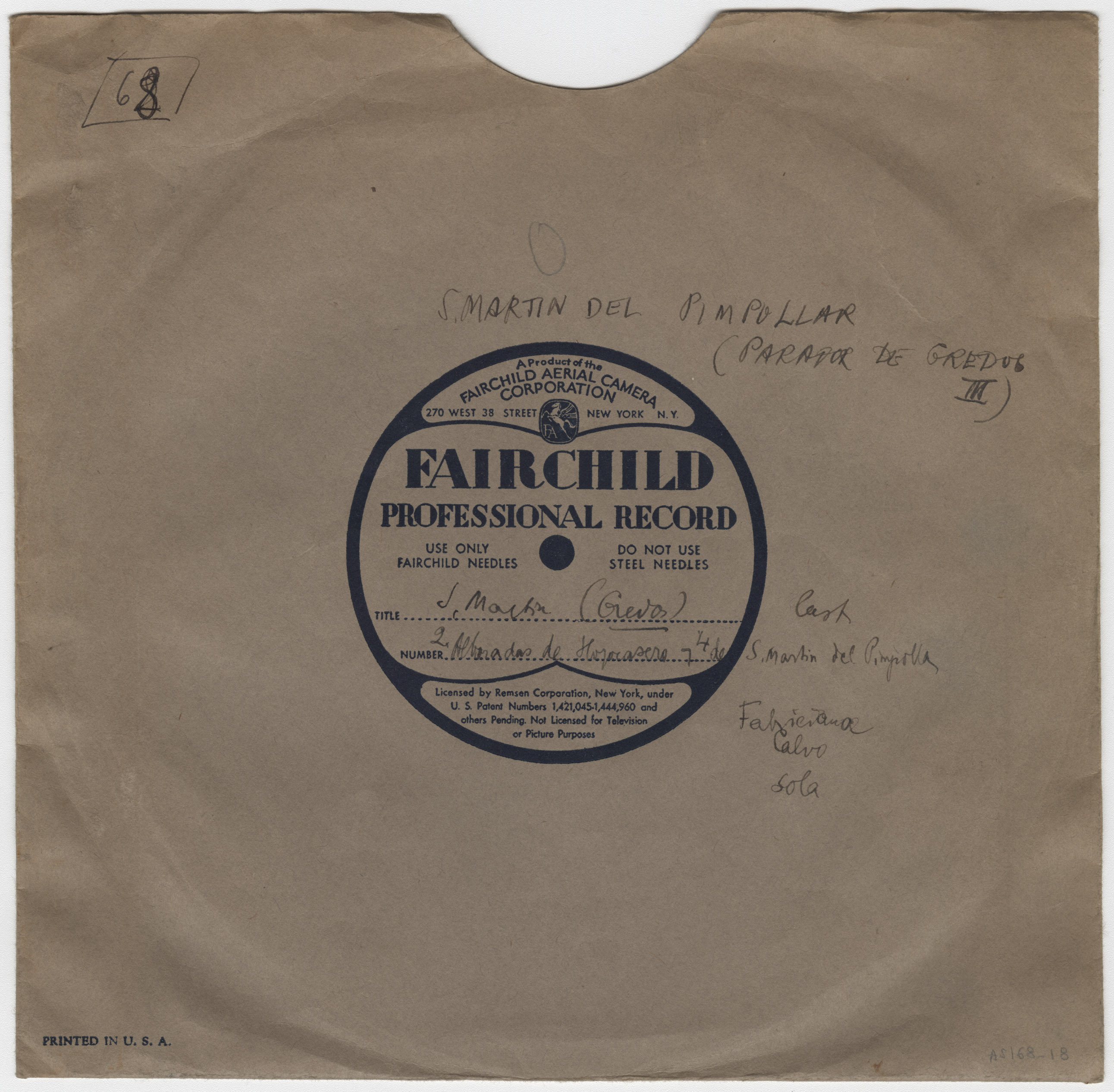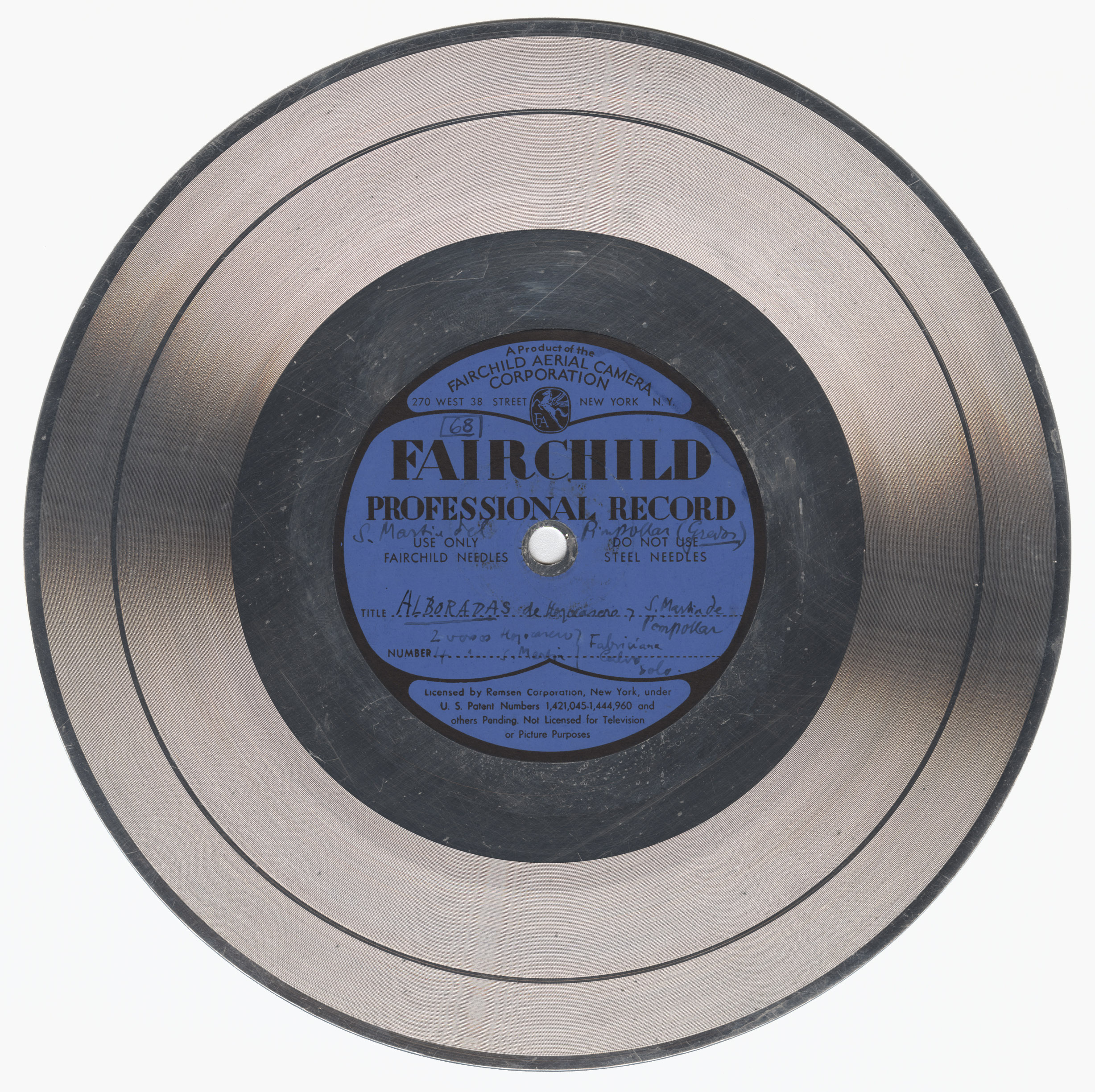 Marca comercial: Fairchild Professional Record (Fairchild Aereal Camera Corporation, New York).