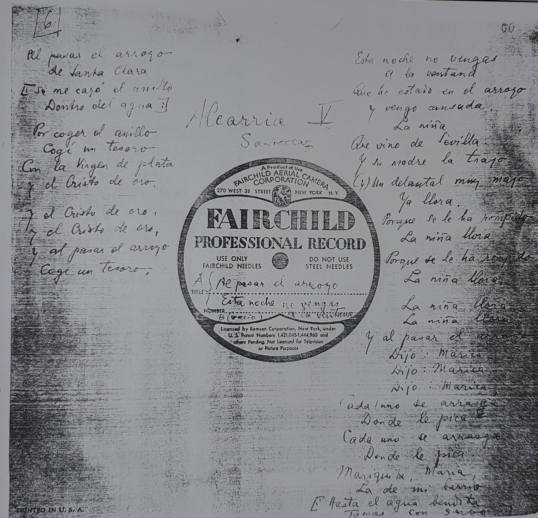Fondo: Junta para Ampliación de Estudios. Centro de Estudios Históricos. Sección de Filología. Archivo de la Palabra y de las Canciones Populares#Colección Kurt Schindler. En paradero desconocido