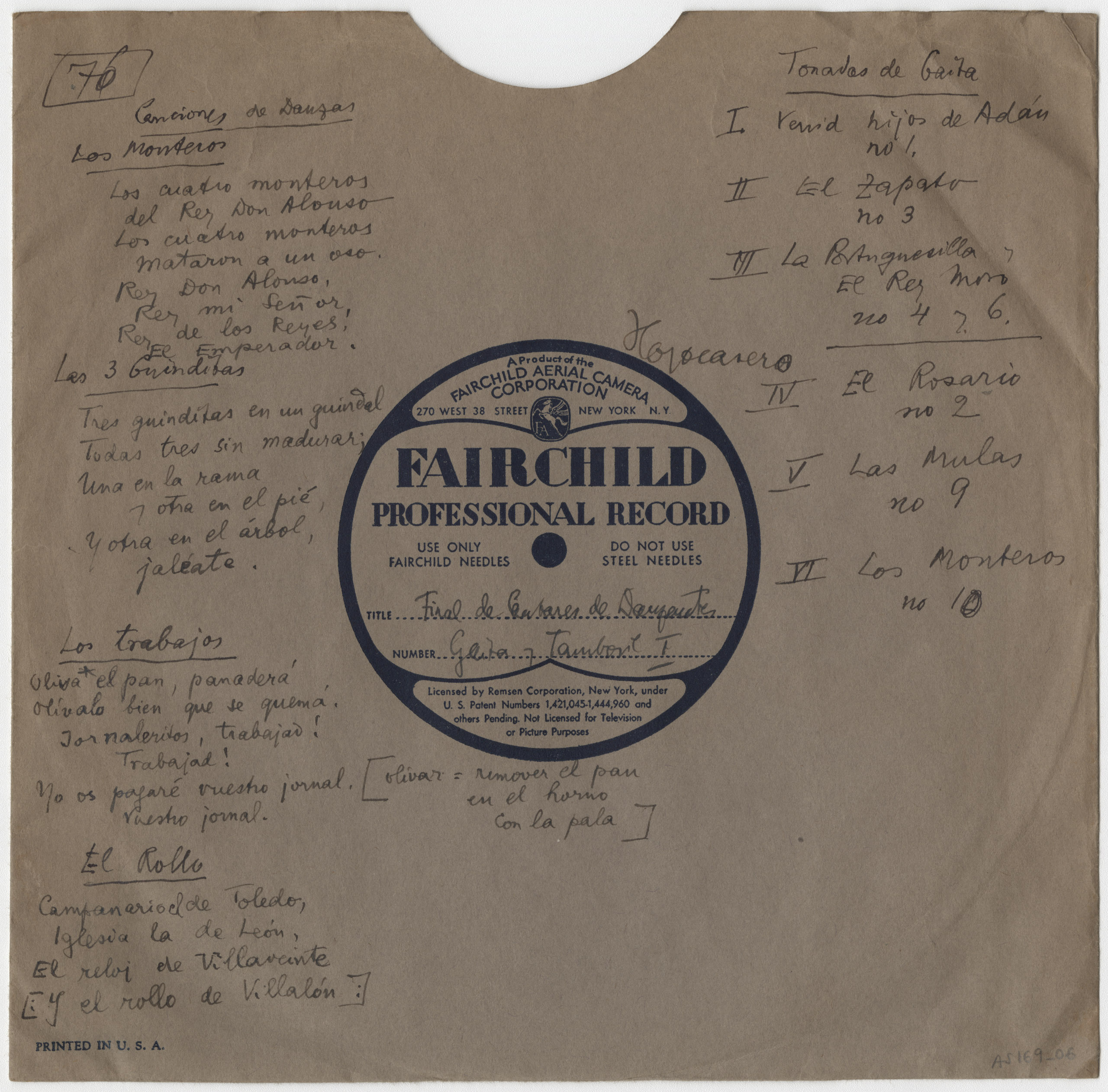 Final de cantares de danzantes. Los trabajos (Título procedente de la transcripción directa del disco)