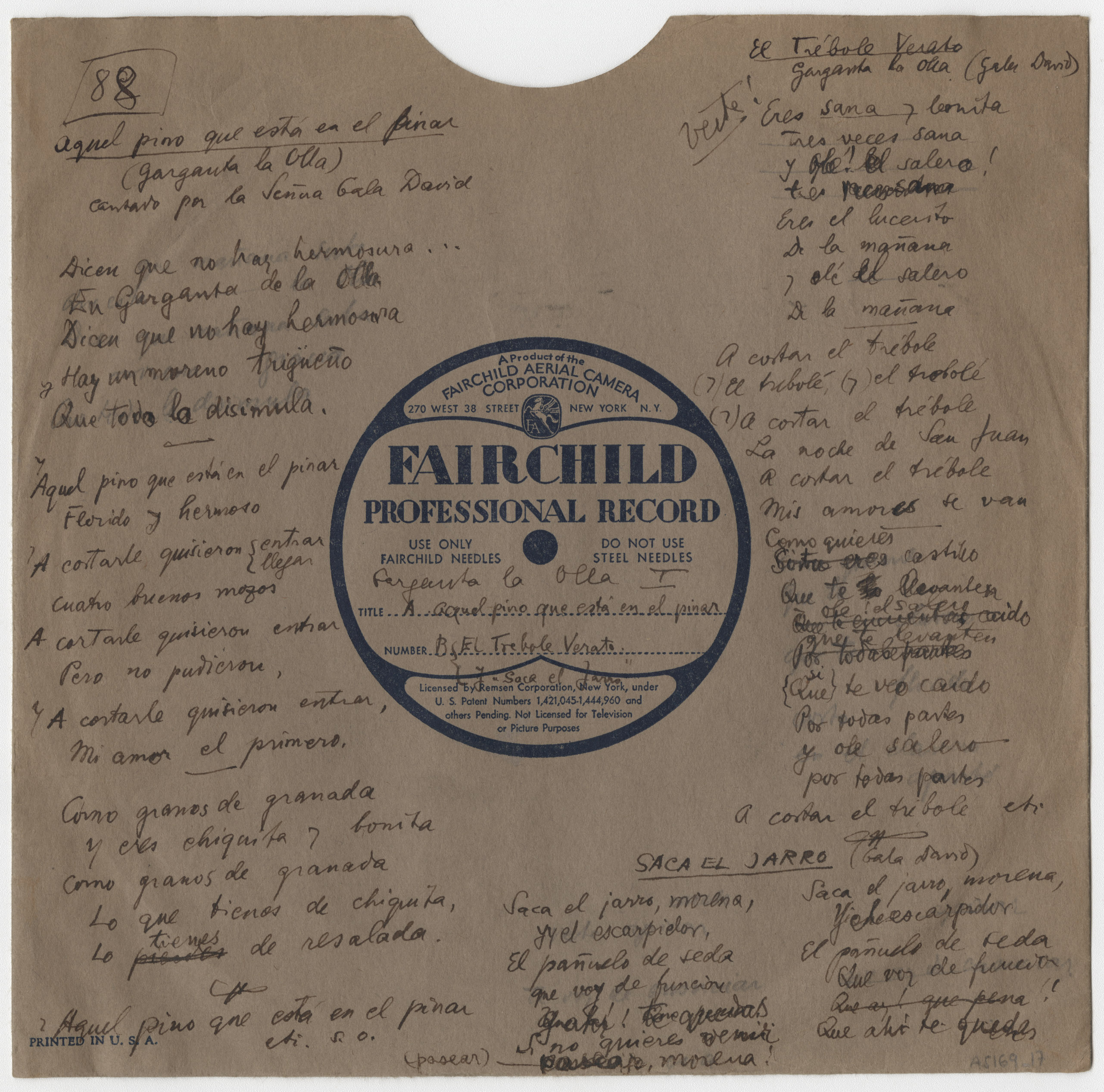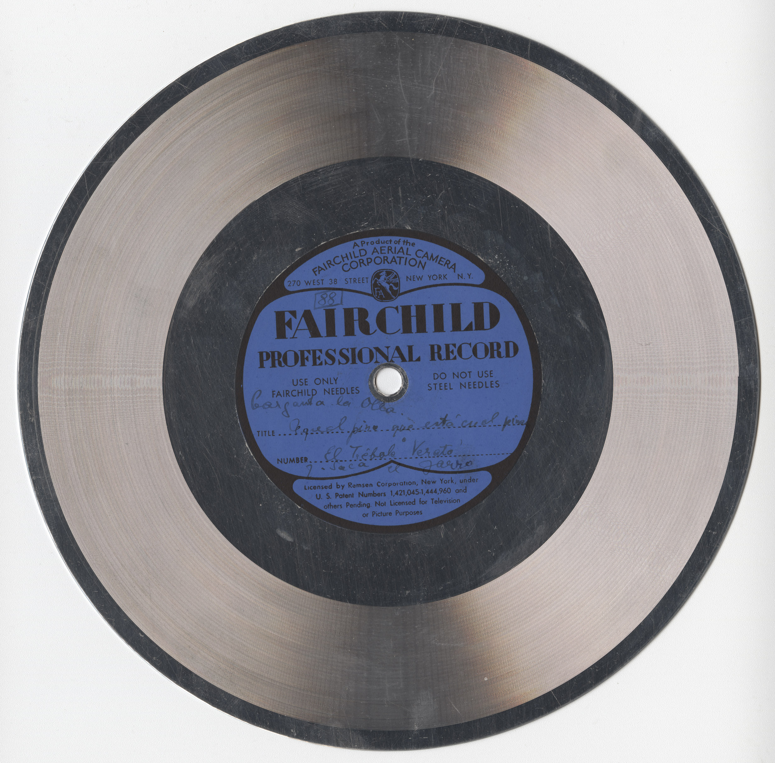 Marca comercial: Fairchild Professional Record (Fairchild Aereal Camera Corporation, New York).
