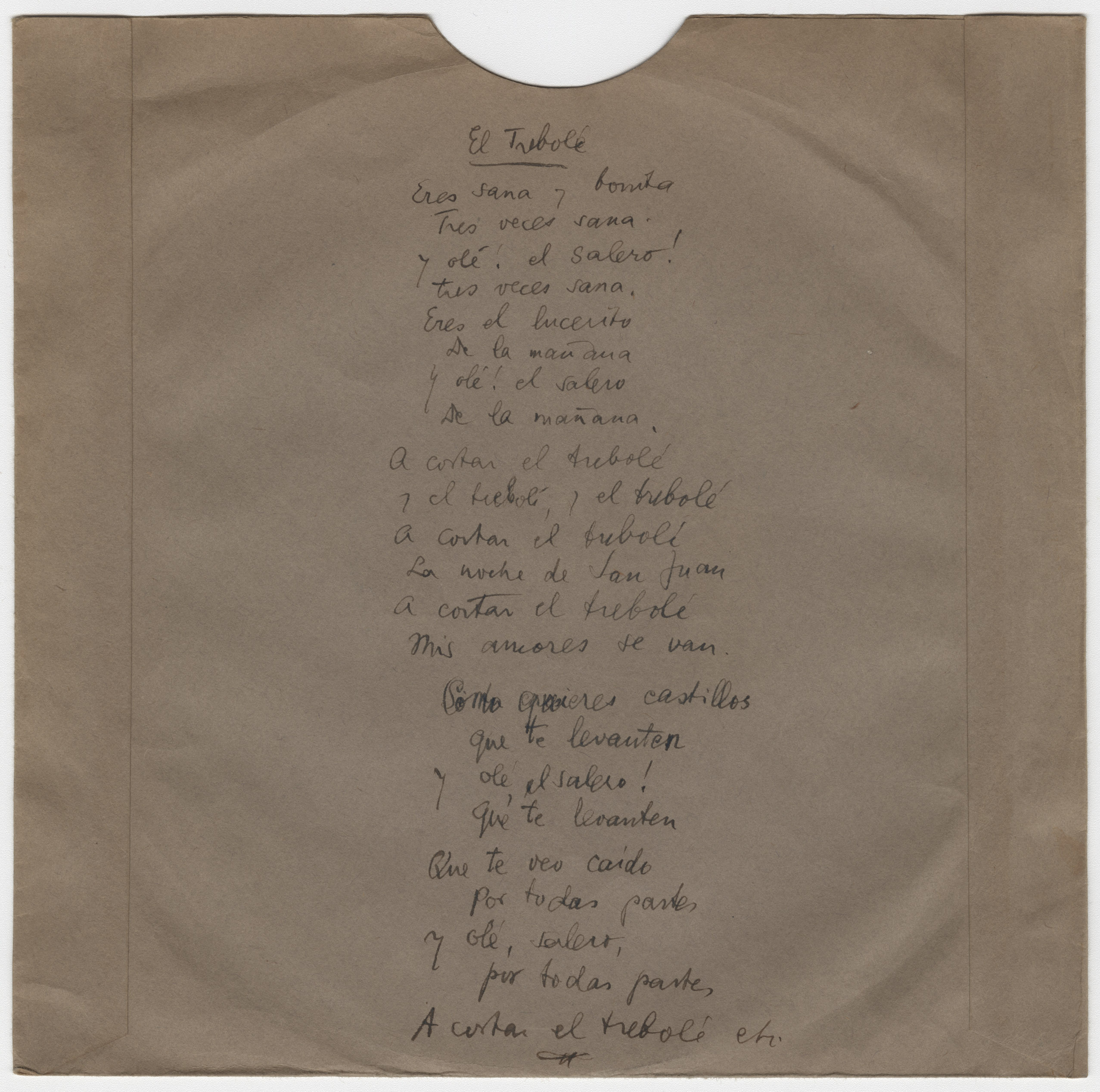 El Trébole verato (Título procedente de la transcripción directa del disco)