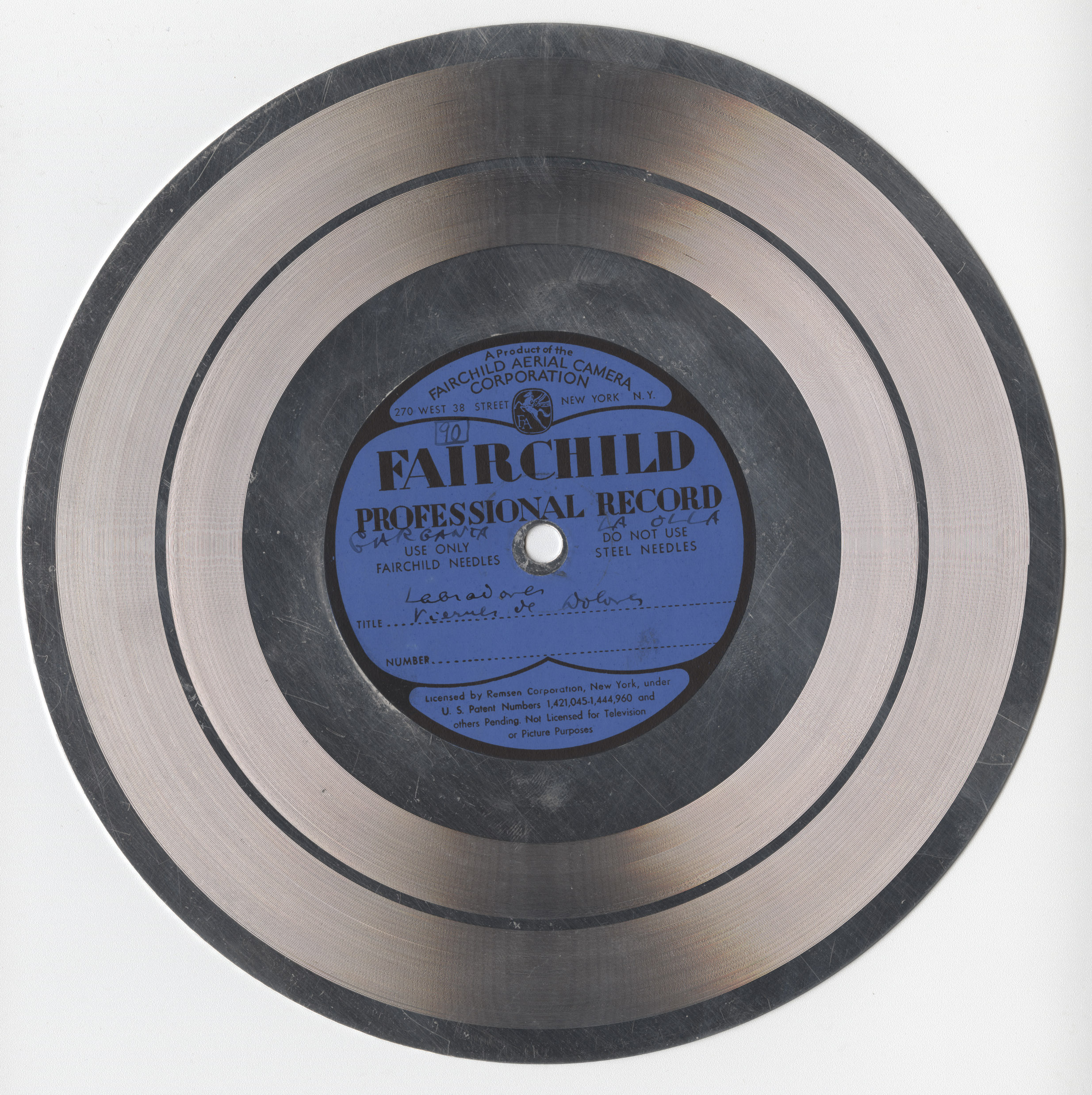 Marca comercial: Fairchild Professional Record (Fairchild Aereal Camera Corporation, New York).