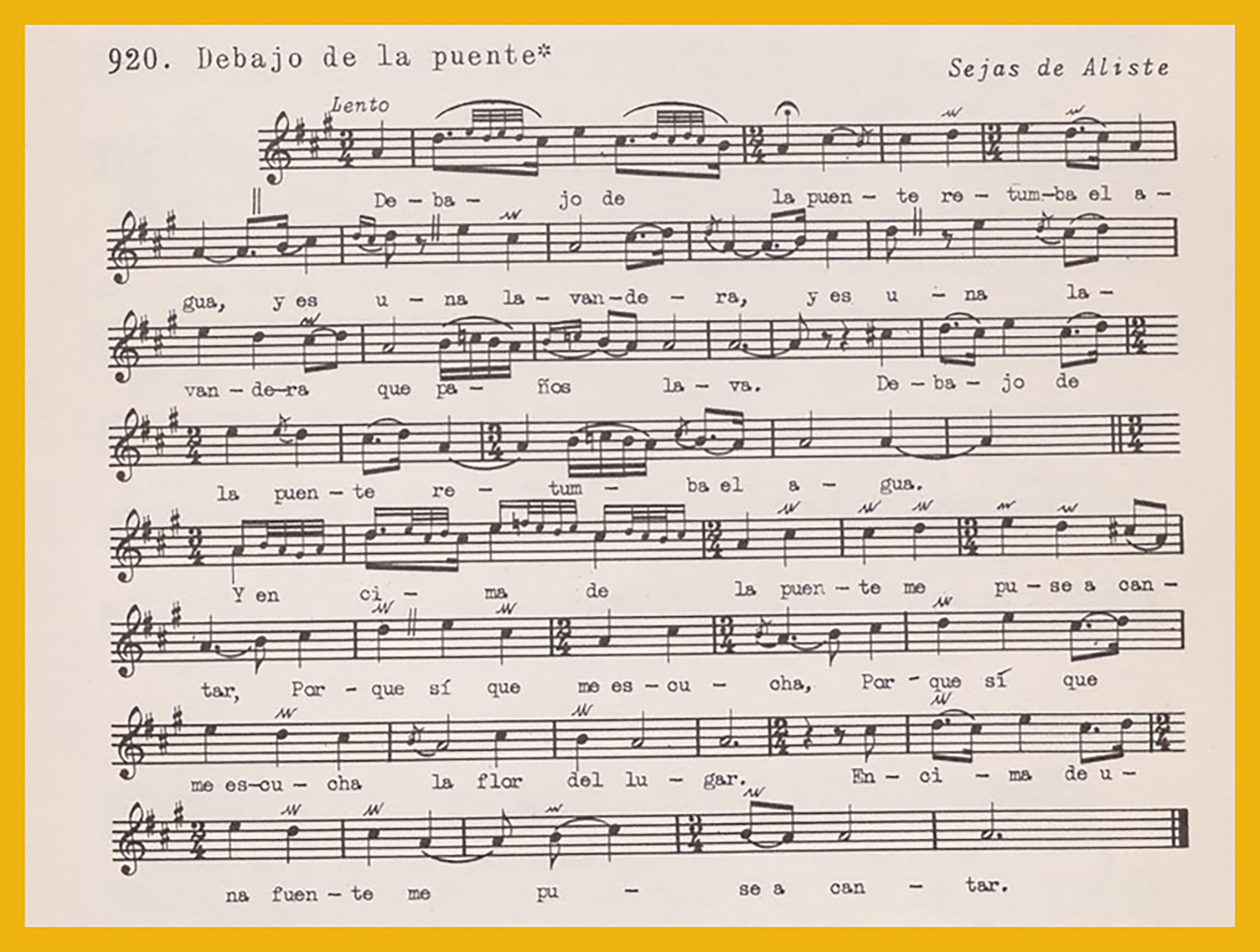 Ref. Partitura transcripción Kurt Schindler (1941): A. «Debajo del puente», registro número 920