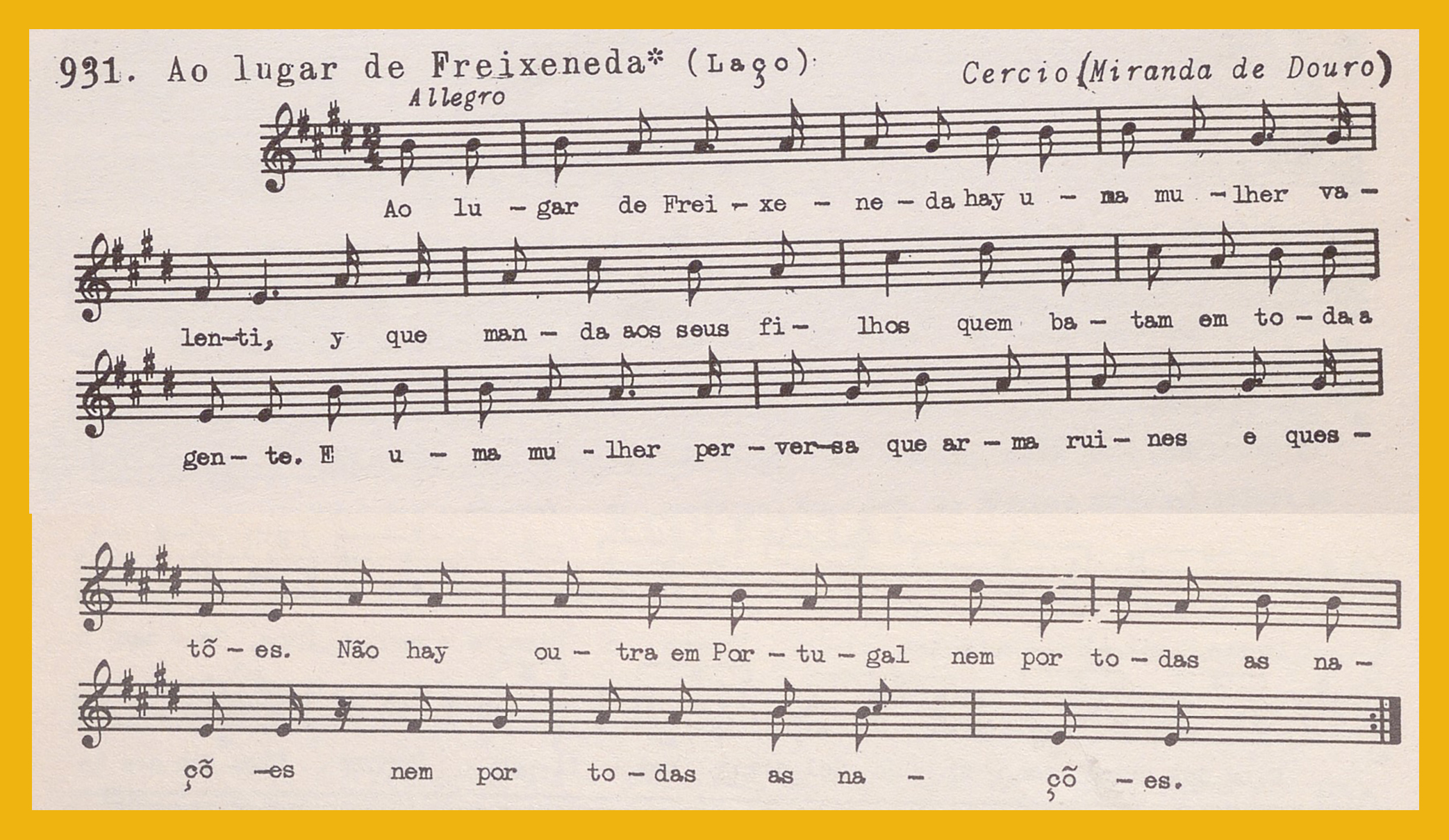 Ref. Partitura transcripción Kurt Schindler (1941): «Ao lugar do Freixeneda (Laço)», registro número 931