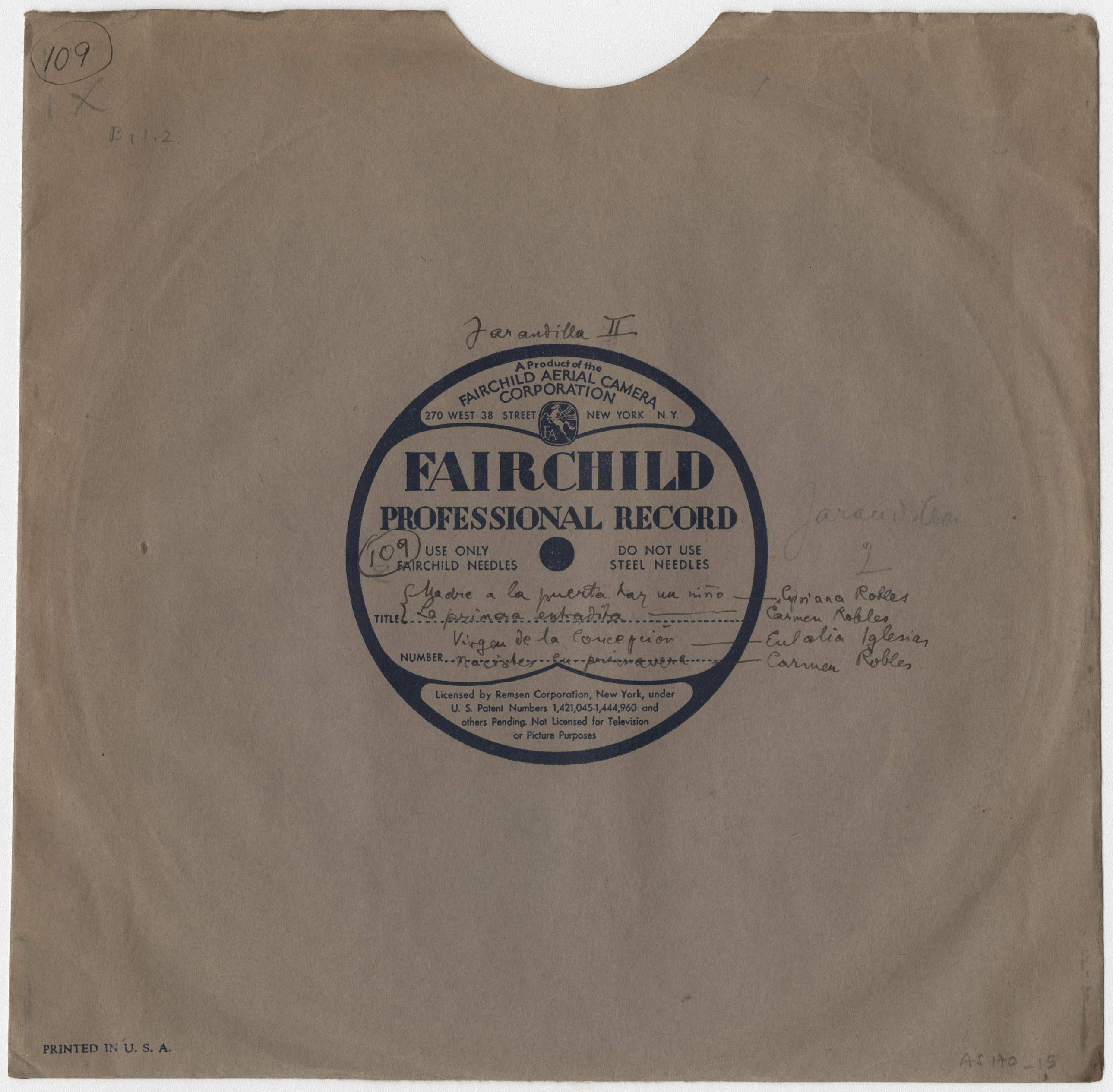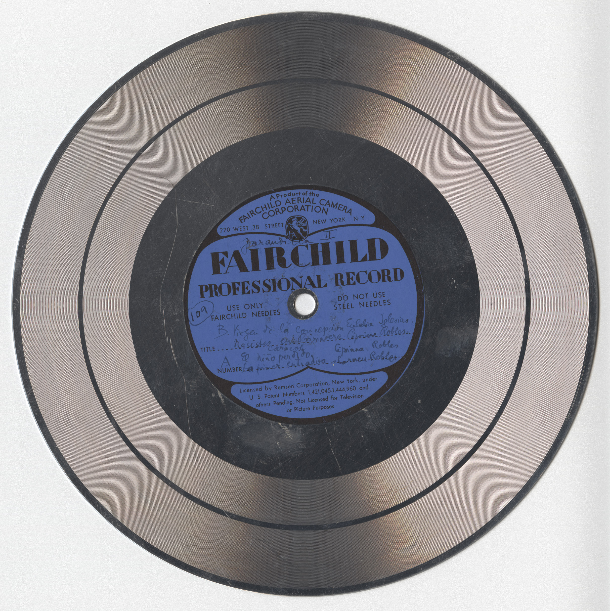 Marca comercial: Fairchild Professional Record (Fairchild Aereal Camera Corporation, New York).