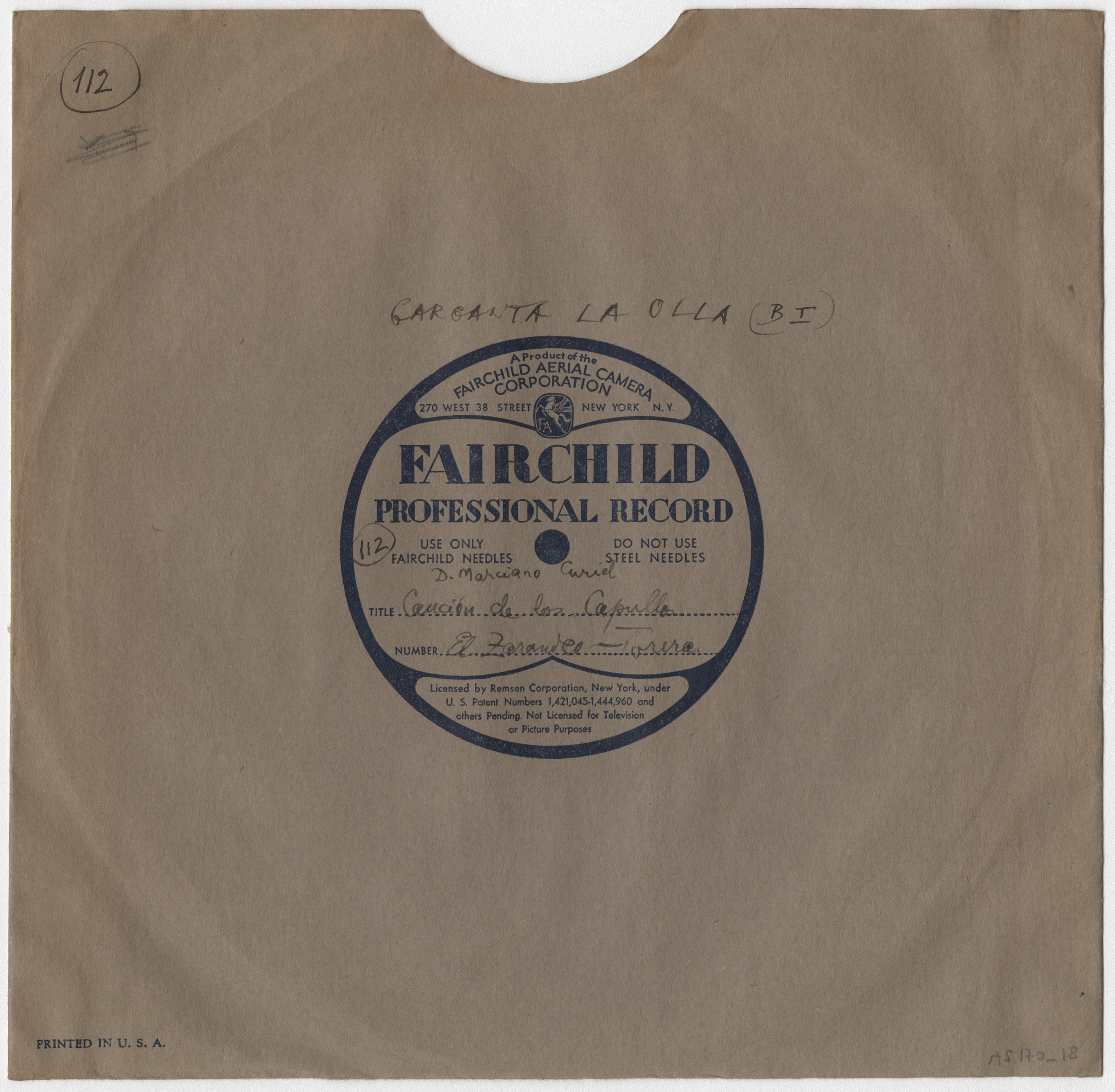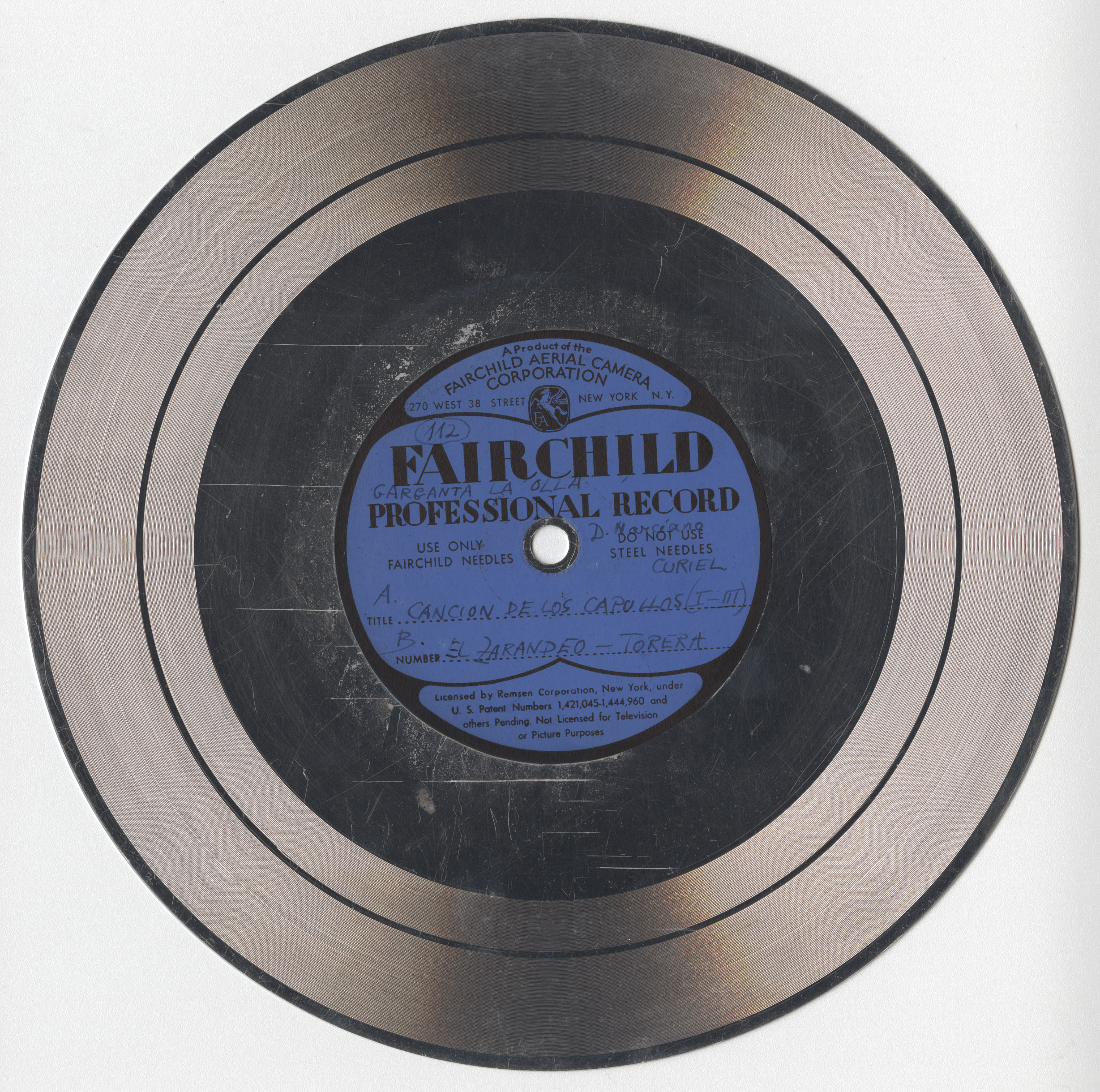 Descripción física: Disco de aluminio. Lleva anotados los títulos de las canciones en la pegatina del disco. El sobre está manuscrito: Garganta de la Olla (BI). Título, interprete, Marciano Curiel, y letra de las canciones.