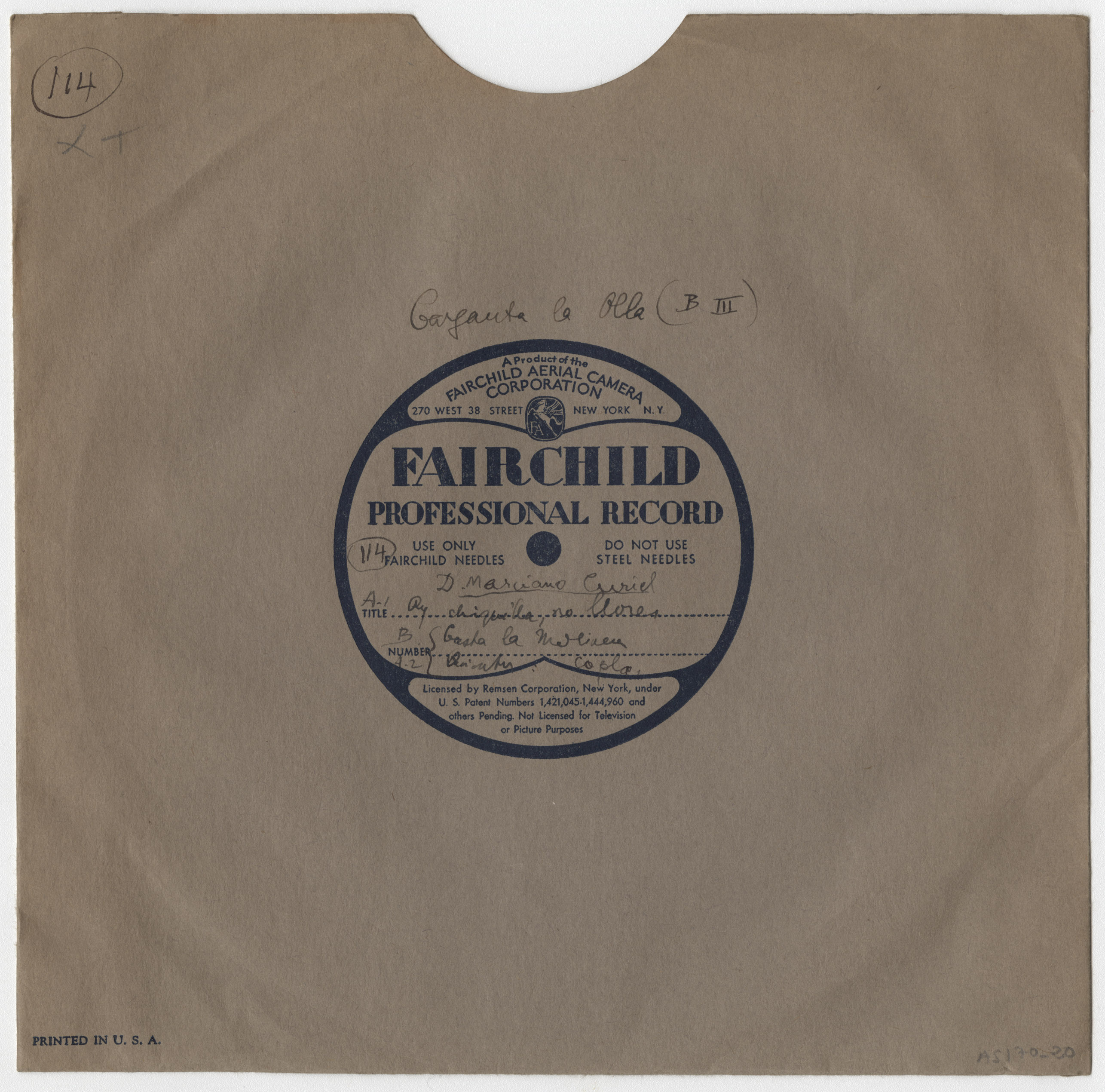 Ay chiquilla, no llores (Título procedente de la transcripción directa del disco)