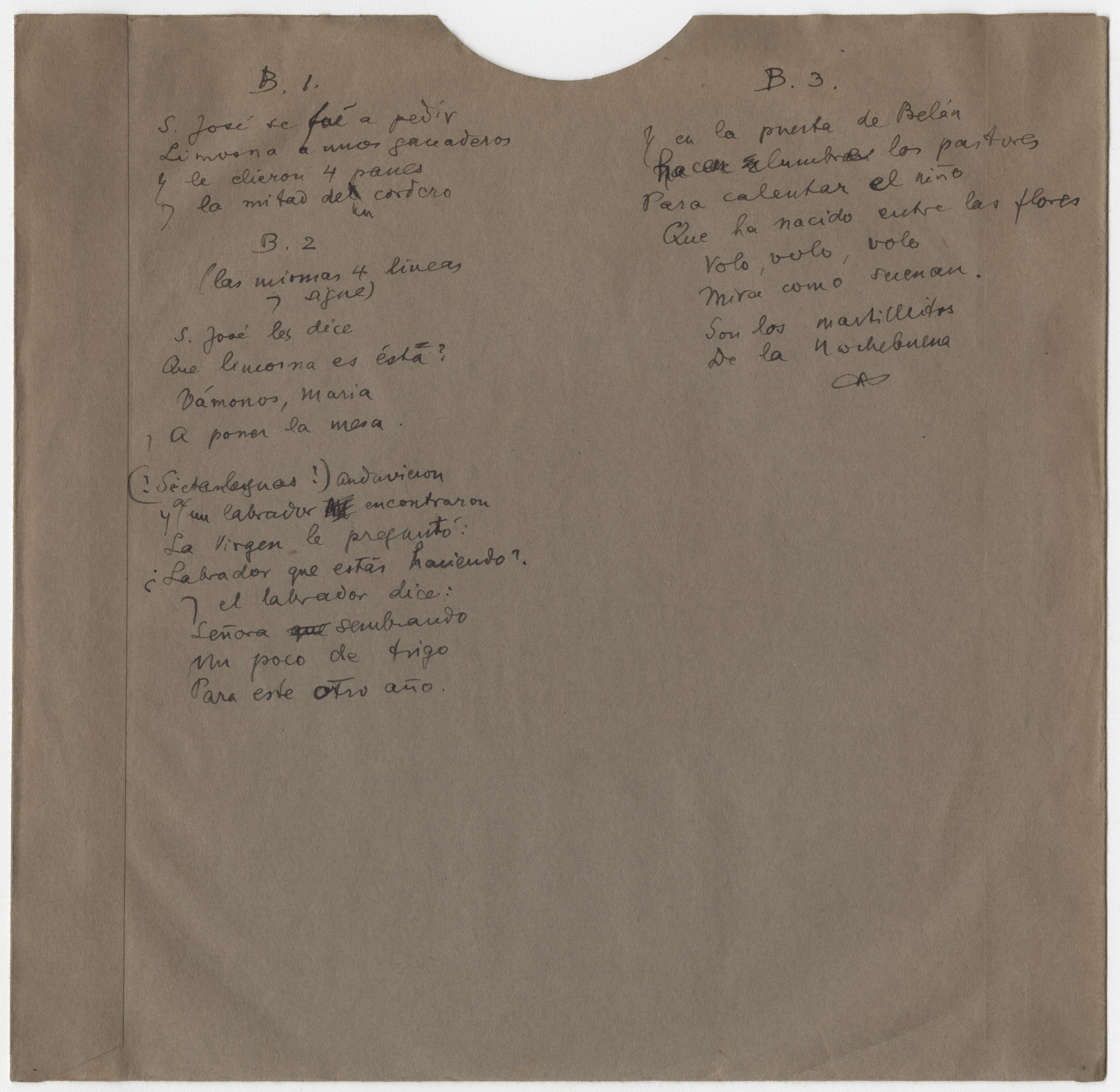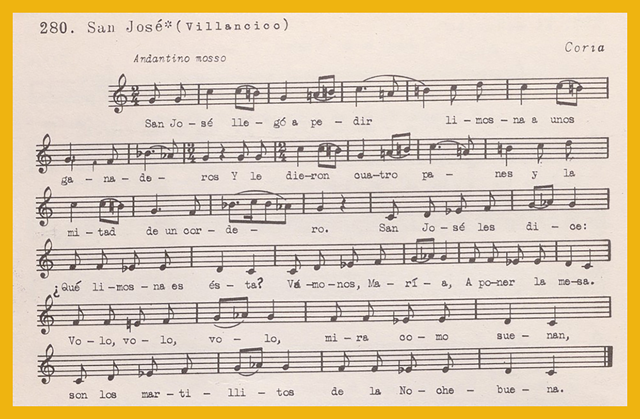 San José se fue a pedir (Primera estrofa) (Título procedente de la transcripción directa del disco)