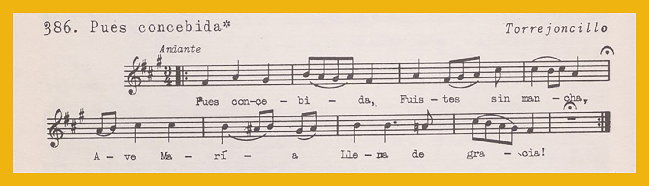 Ref. Partitura transcripción Kurt Schindler (1941): A: «Carrasco», registro nº 269. «Si vas por la carretera», registro nº 270. B: «Pues concebida», registro nº 386. «Virgen de Arjemes», registro nº 387