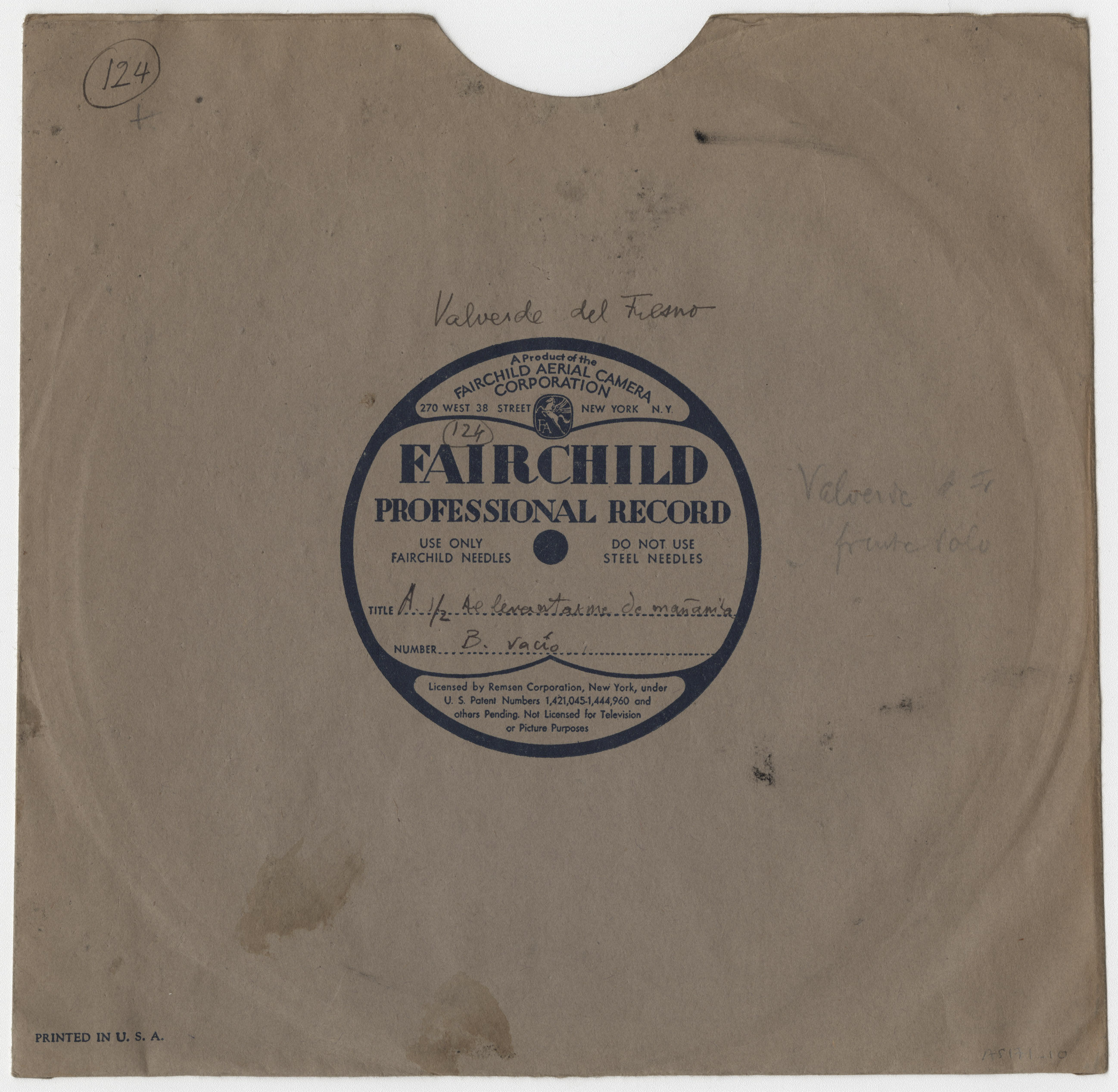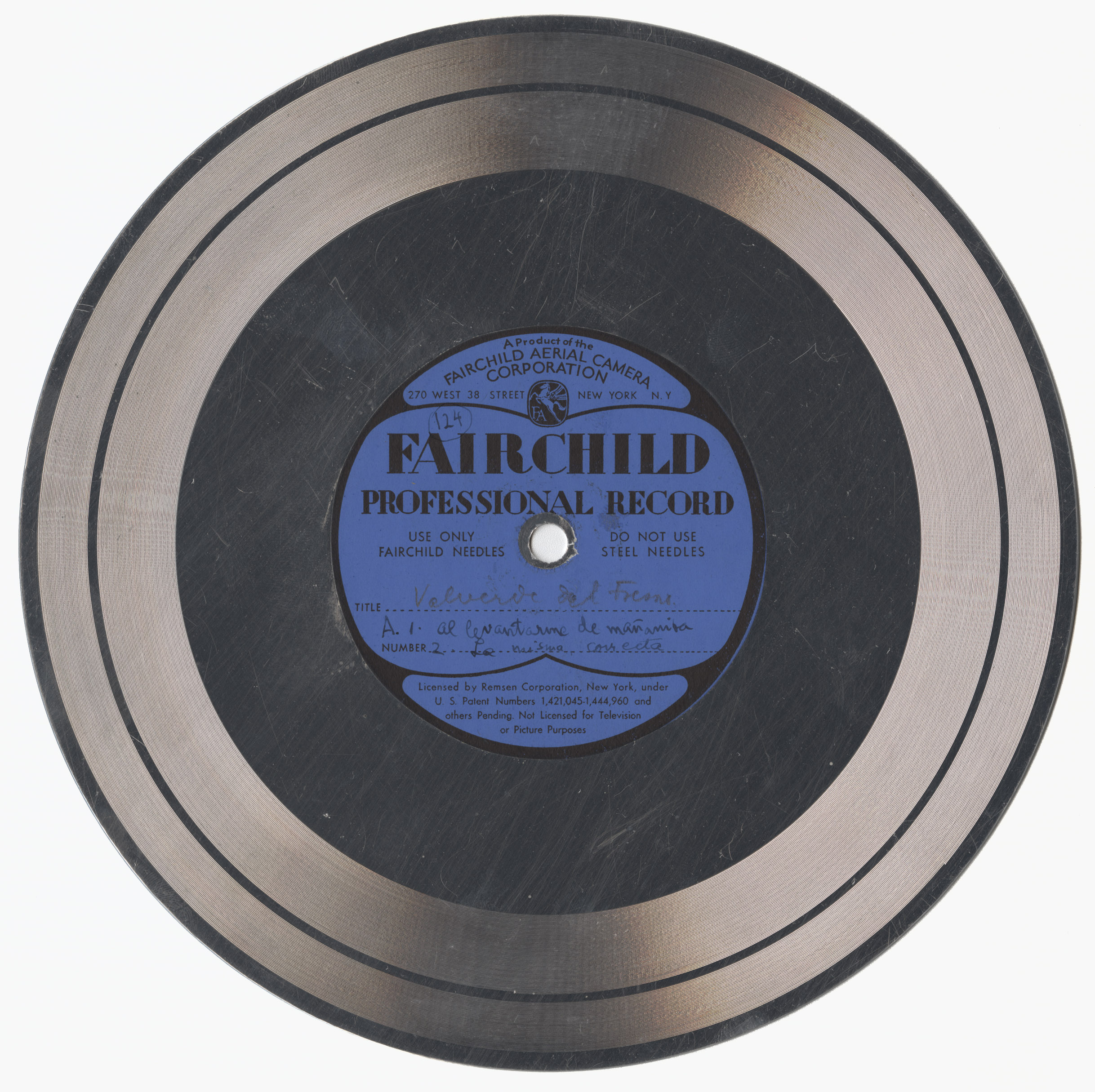 Marca comercial: Fairchild Professional Record (Fairchild Aereal Camera Corporation, New York).