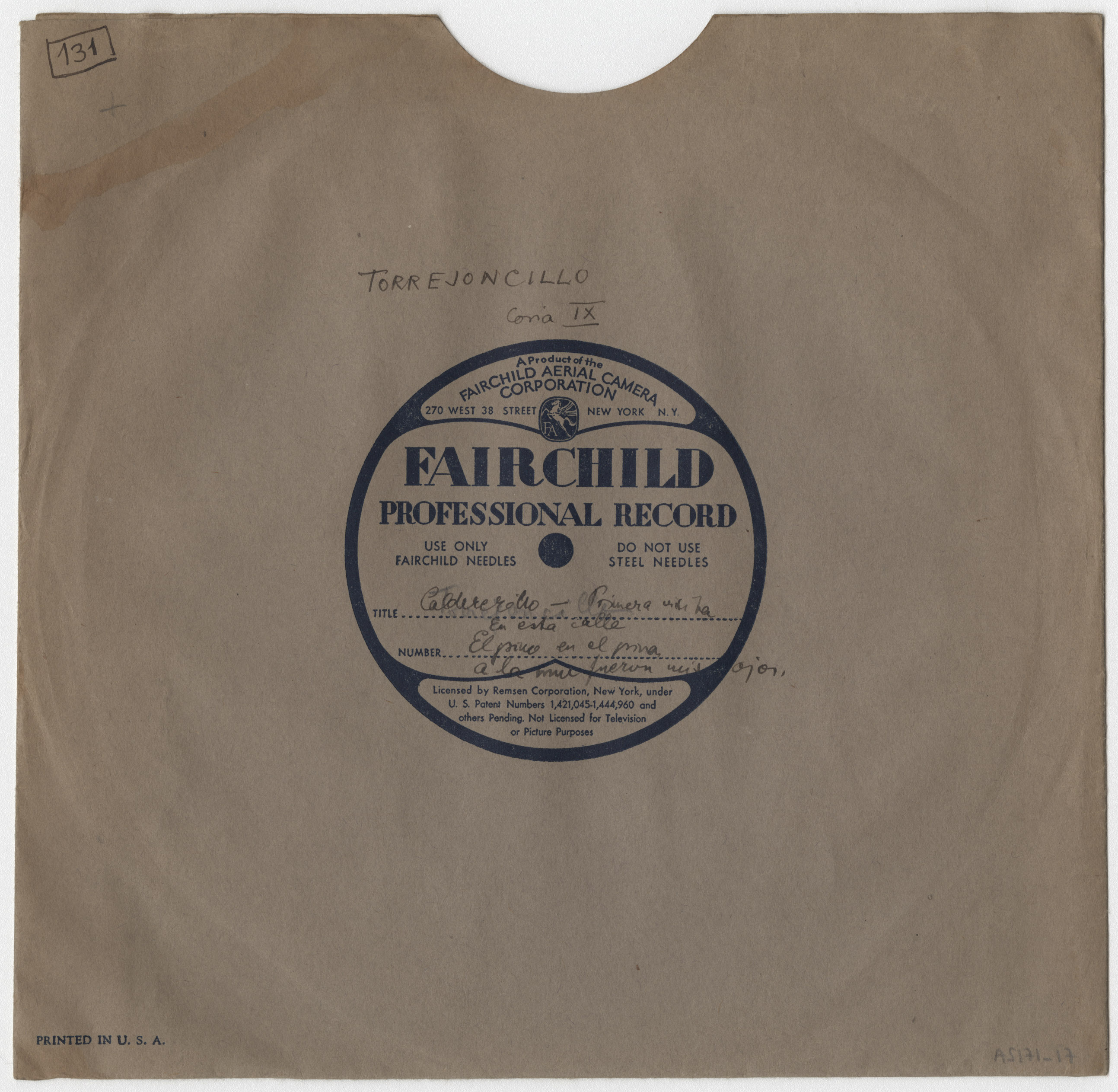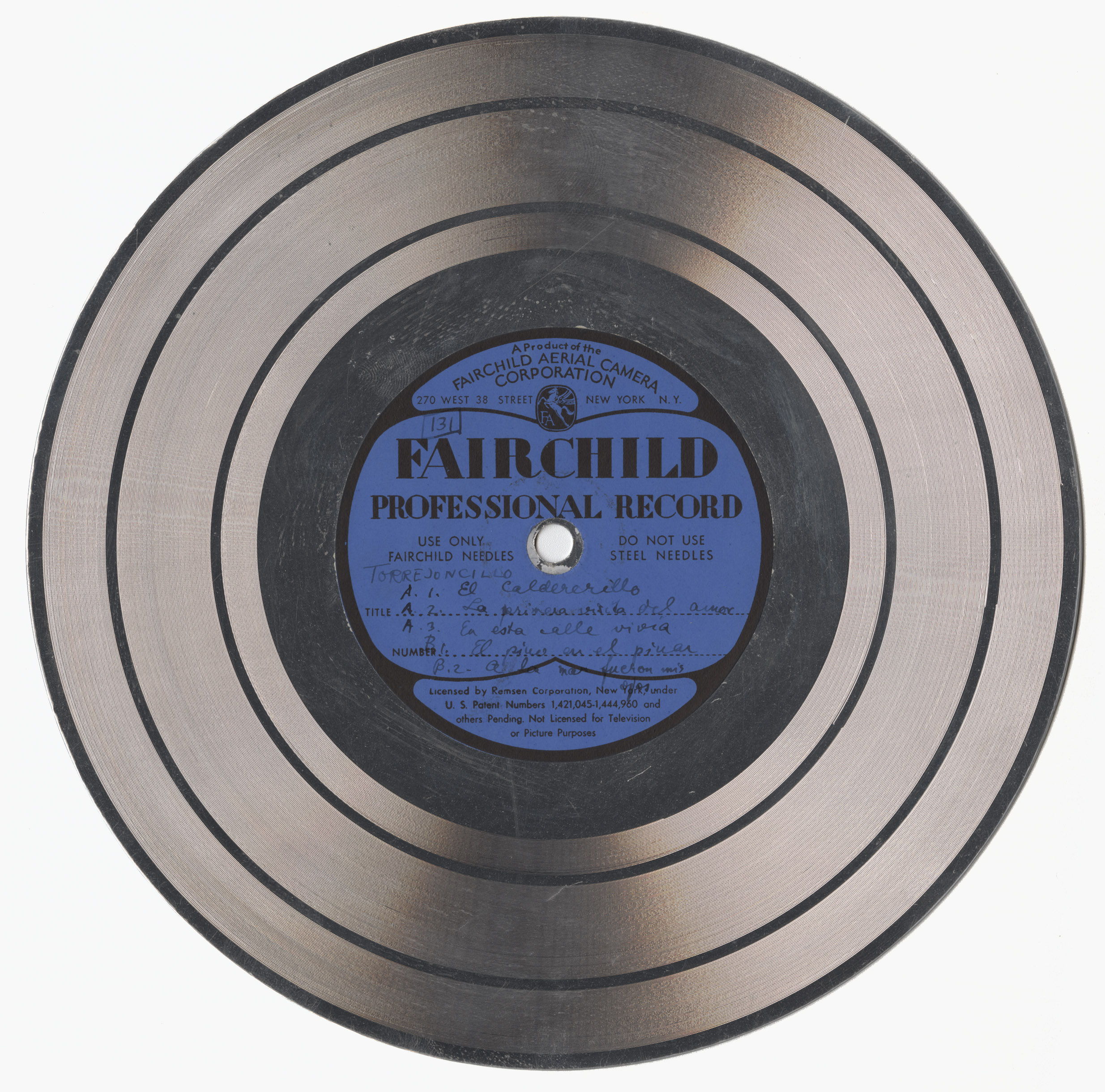 Marca comercial: Fairchild Professional Record (Fairchild Aereal Camera Corporation, New York).