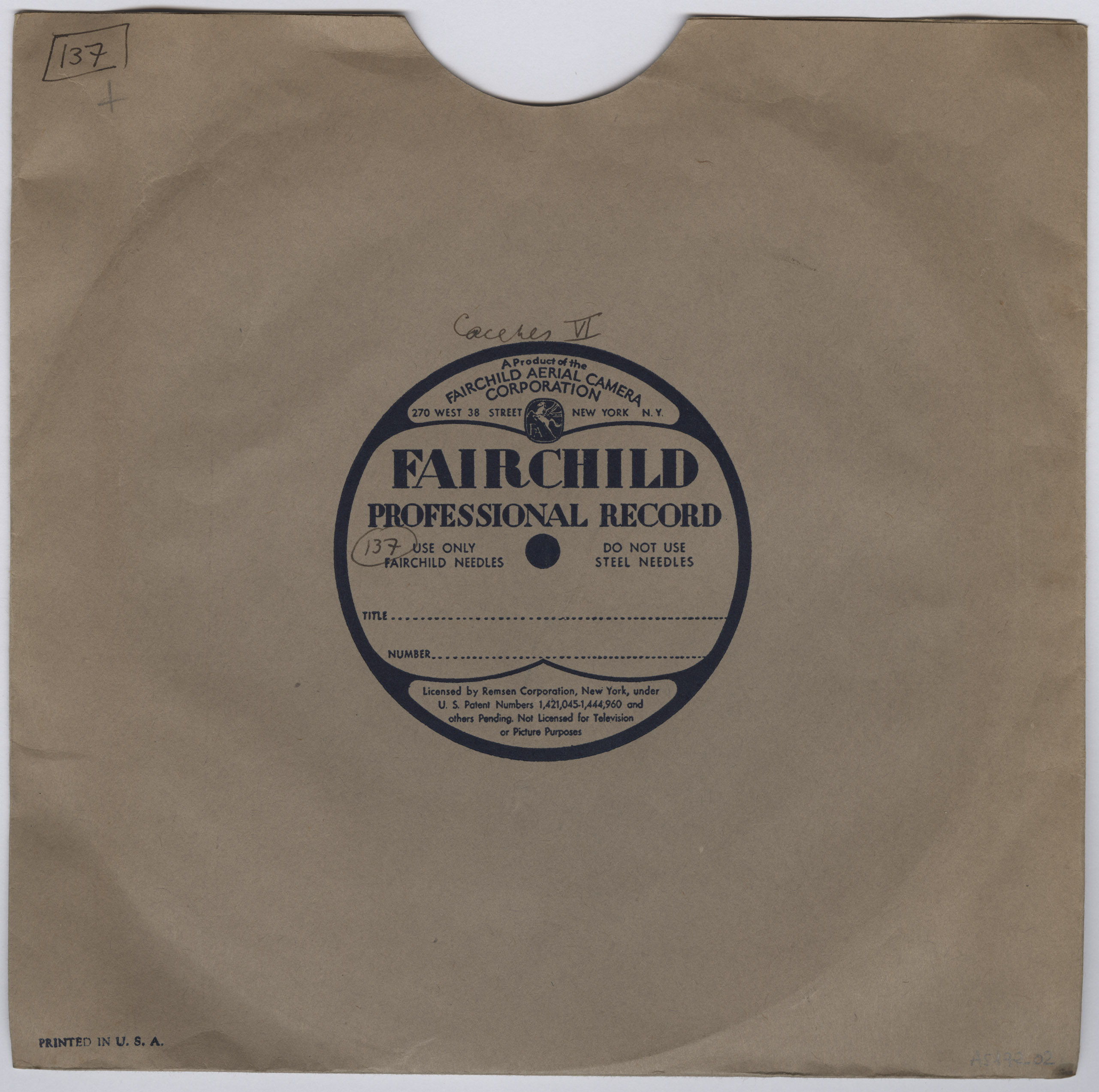 Marca comercial: Fairchild Professional Record (Fairchild Aereal Camera Corporation, New York).