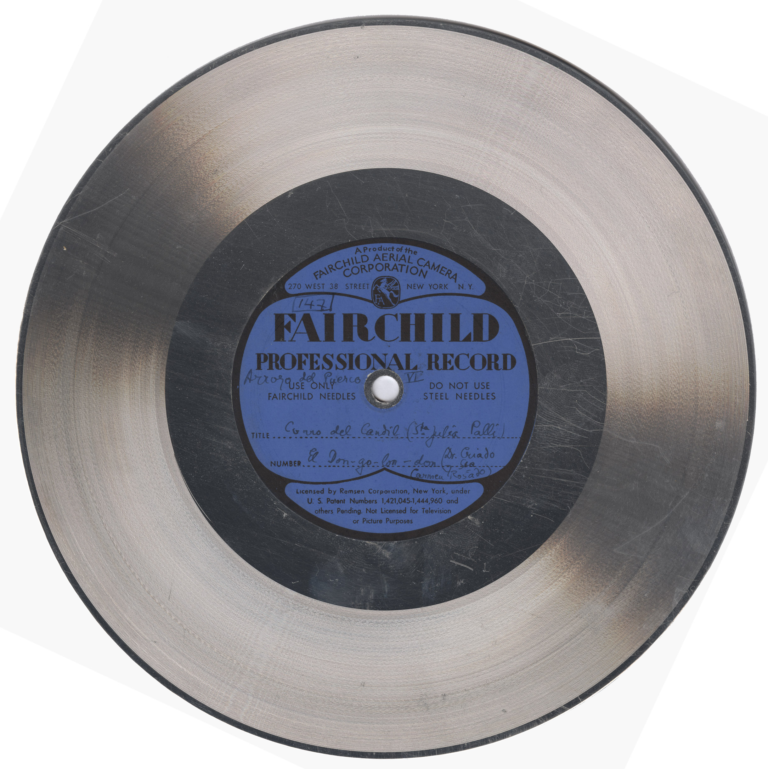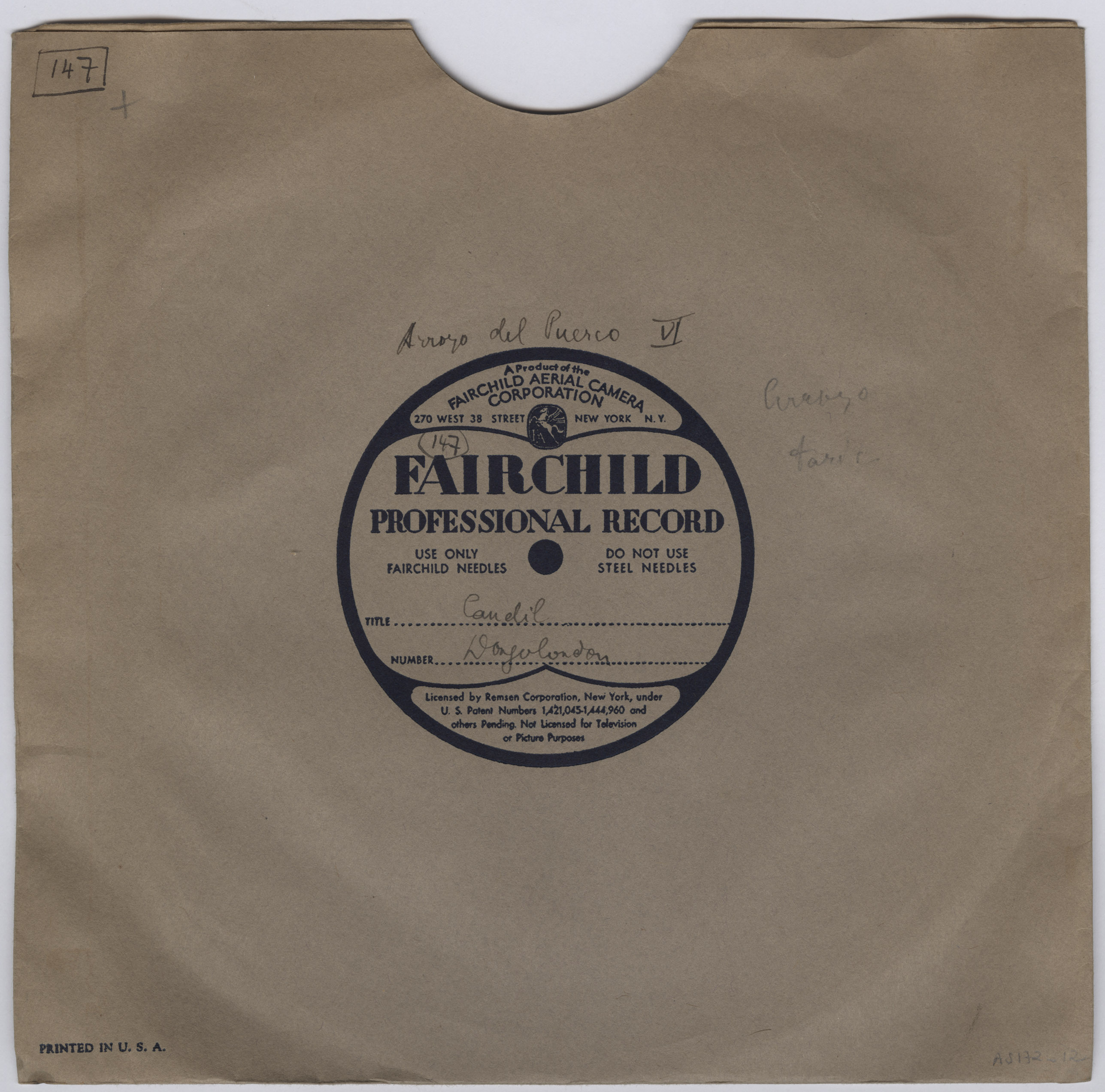 Marca comercial: Fairchild Professional Record (Fairchild Aereal Camera Corporation, New York).