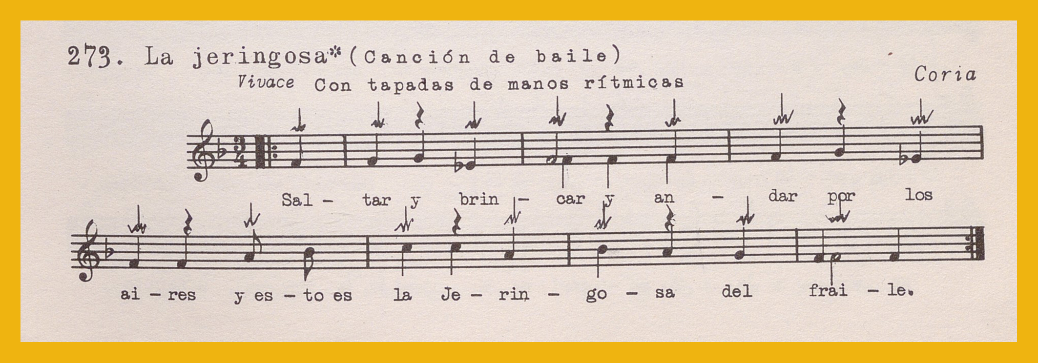 Ref. Partitura transcripción Kurt Schindler (1941): A. «La jeringosa (canción de baile)», registro nº 273. B. «Ramas (Canciones de baile)», registro nº 211. «Llanas (Canciones de baile», registro nº 212