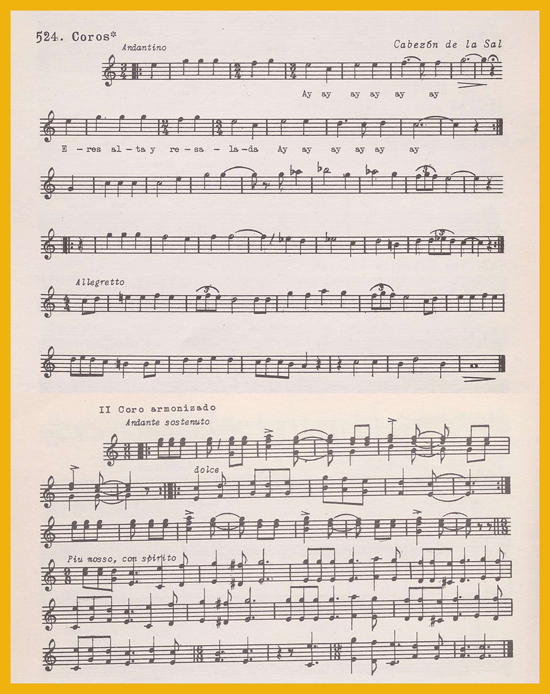 Ref. Partitura transcripción Kurt Schindler (1941): A. «Coros», registro nº. 524. B. «II Coro armonizado», registro nº. 524 (están todos los grabados en este disco bajo el mismo registro)