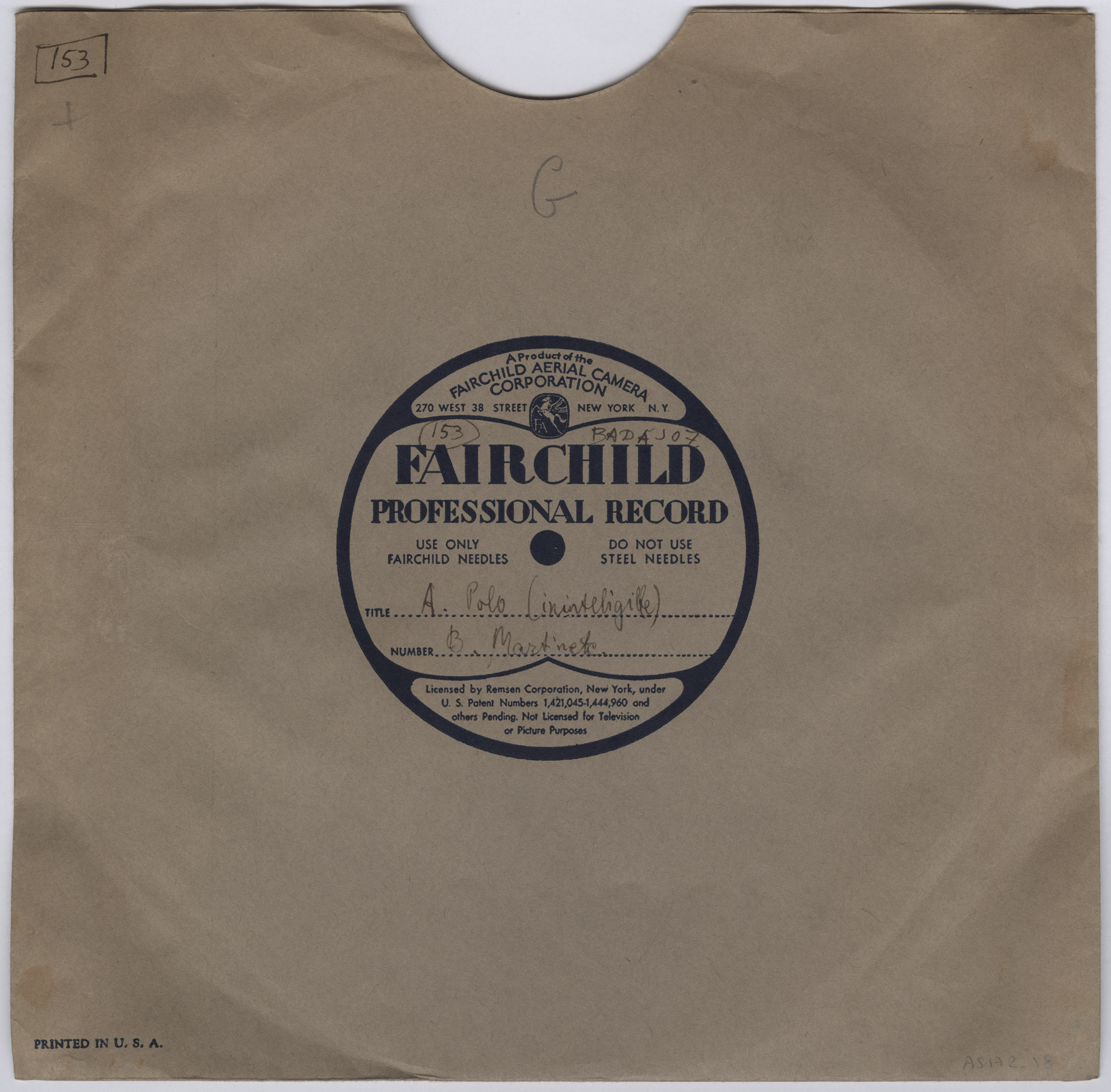 Marca comercial: Fairchild Professional Record (Fairchild Aereal Camera Corporation, New York).