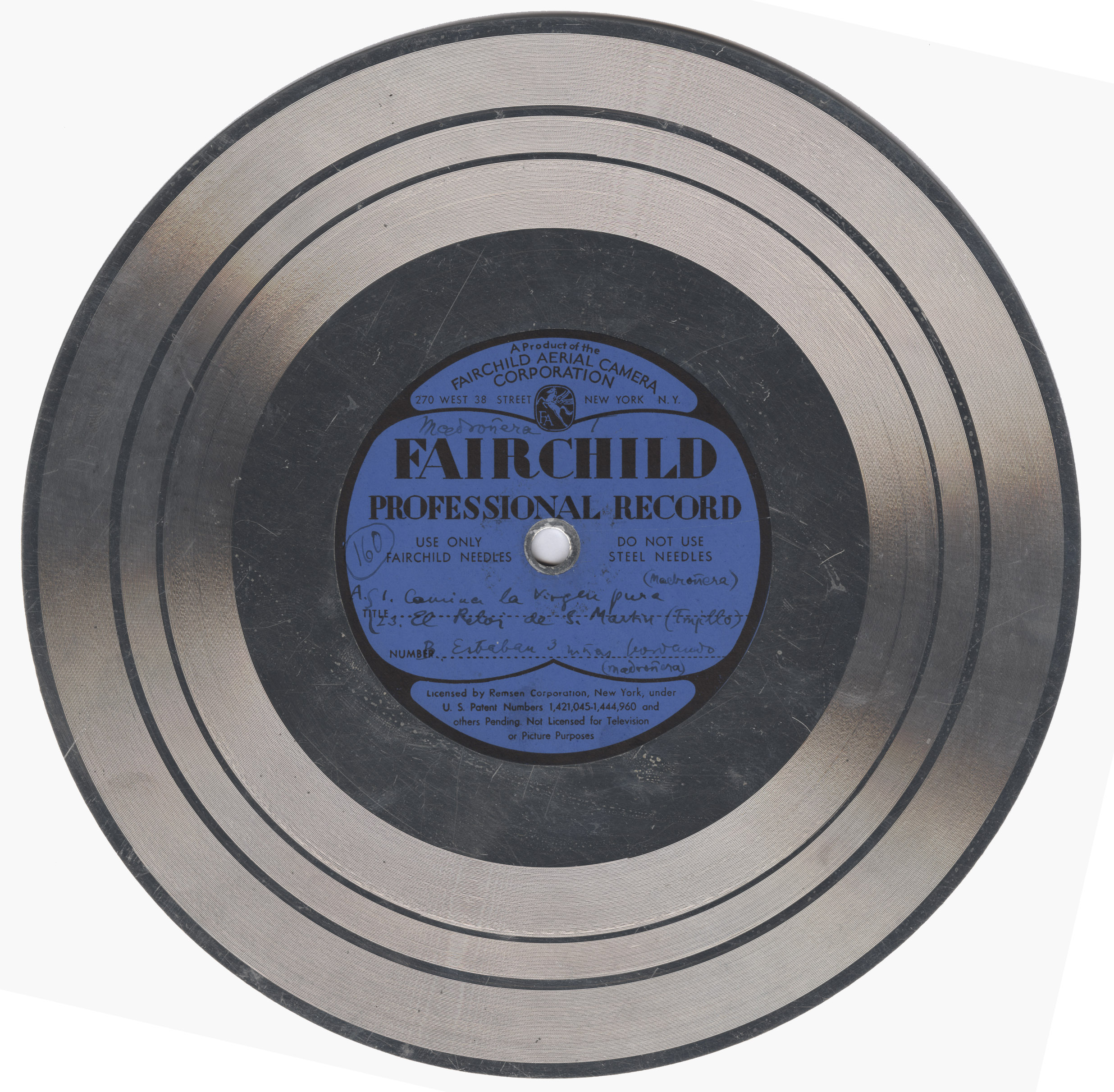 Marca comercial: Fairchild Professional Record (Fairchild Aereal Camera Corporation, New York).