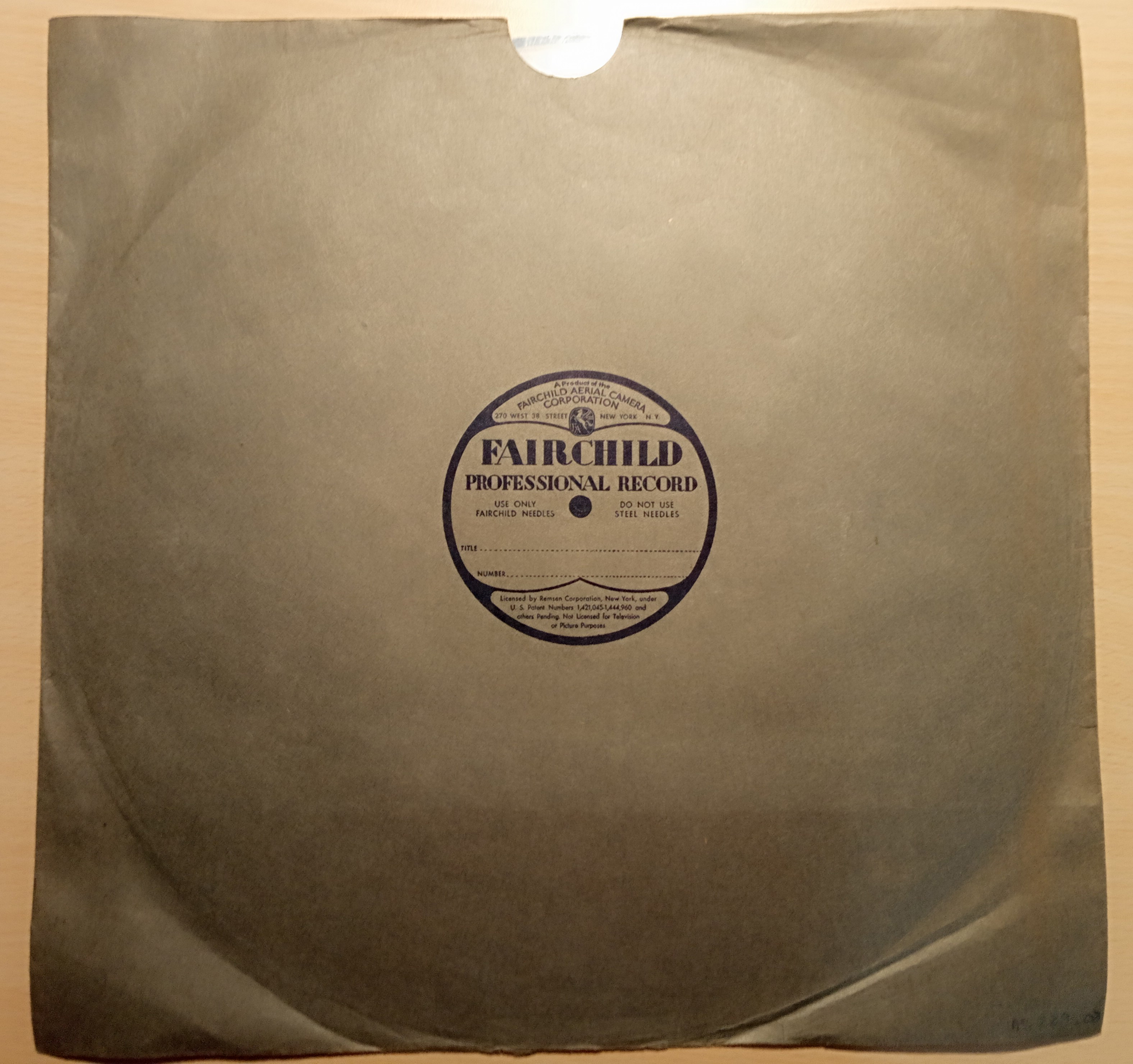 Marca comercial: Fairchild Professional Record (Fairchild Aereal Camera Corporation, New York).