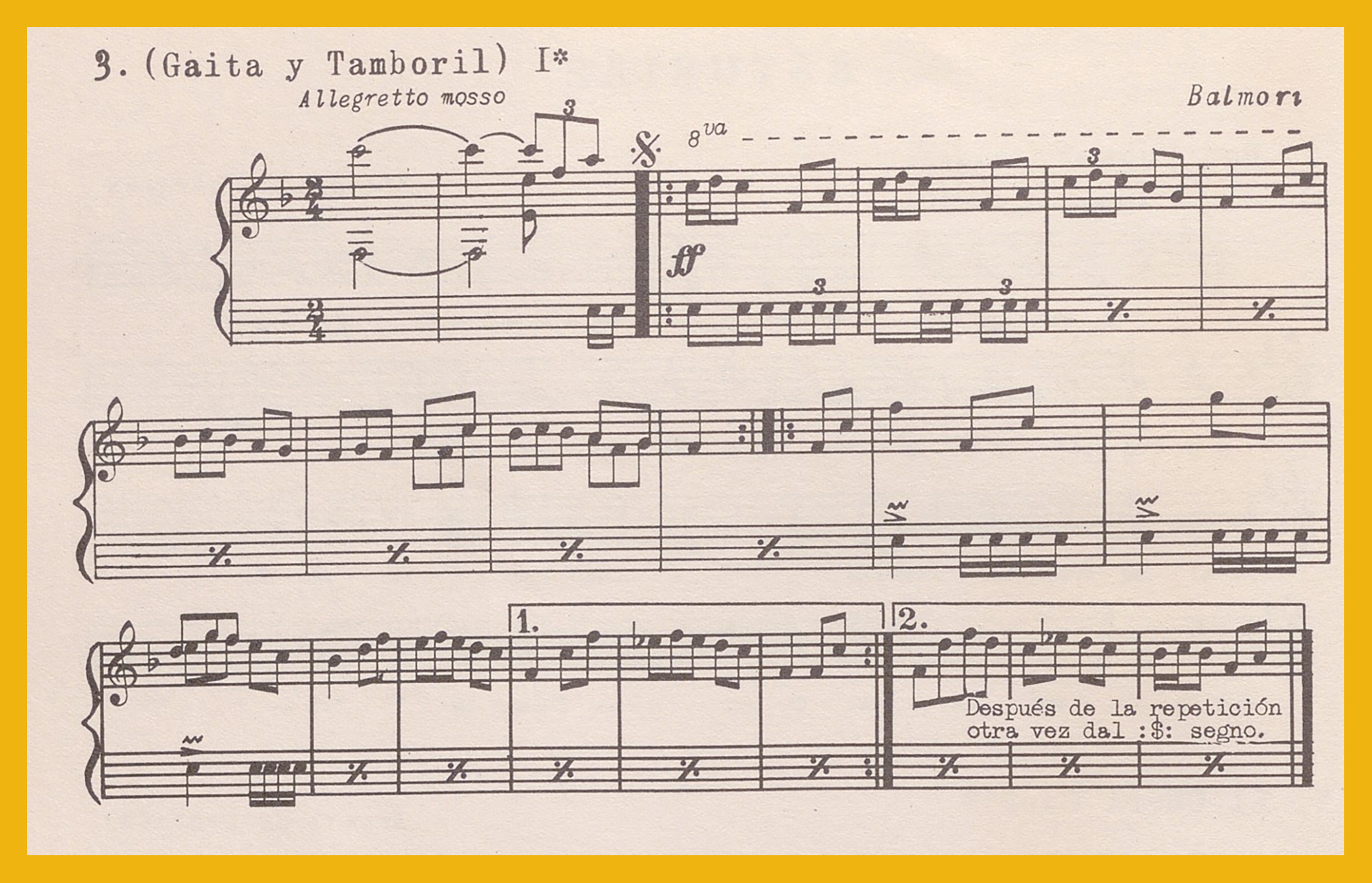 Ref. Partitura transcripción Kurt Schindler (1941): A. .«Gaita y tamboril I», registro nº3. «Gaita y tamboril I», registro nº4. B. «El trillo (Danza cantada)», registro nº5