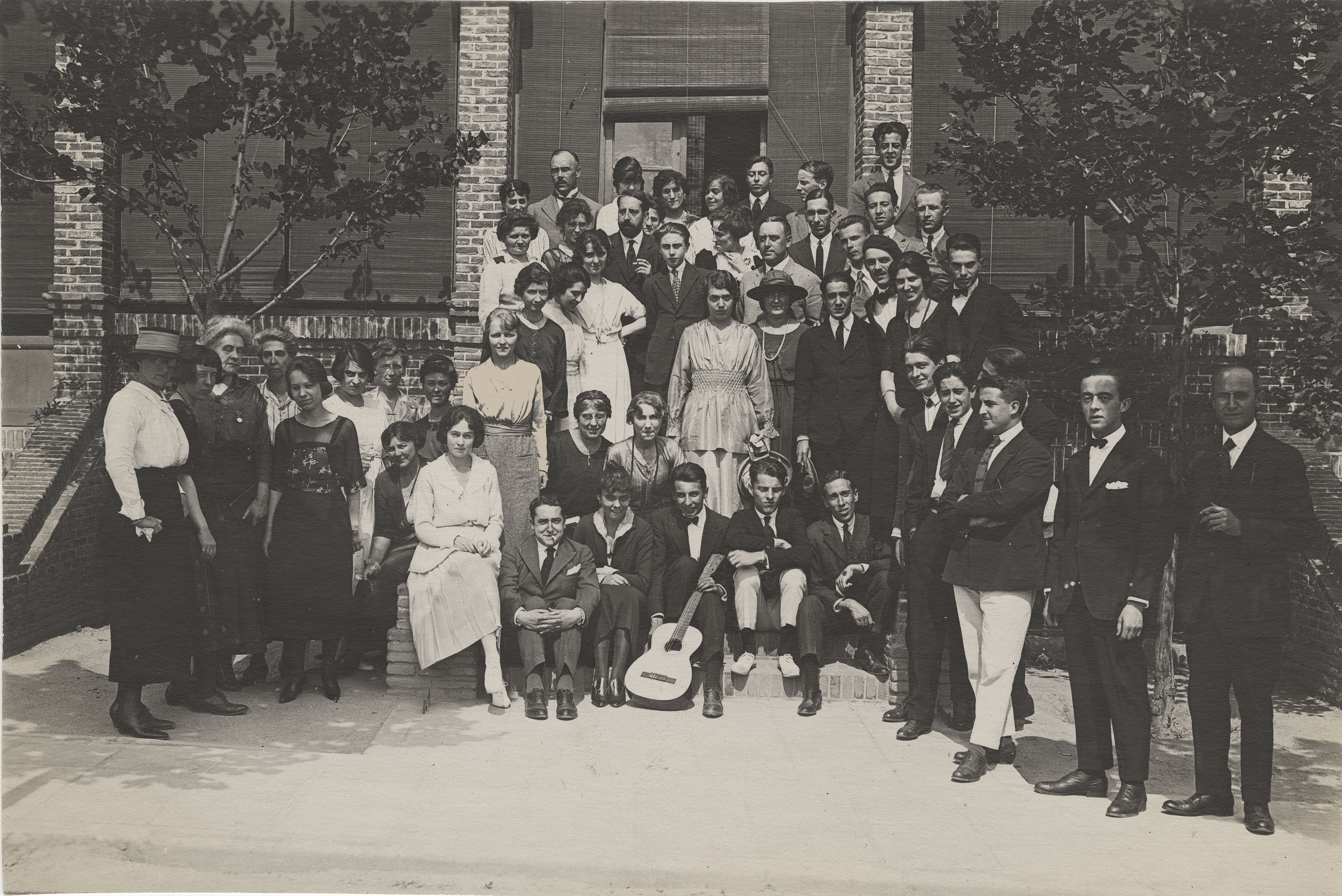 Fotografía de grupo en la Residencia de Estudiantes donde aparecen Tomás Navarro Tomás y Américo Castro entre otros. @CSIC. ACCHS. Signatura: ATN/MON/016