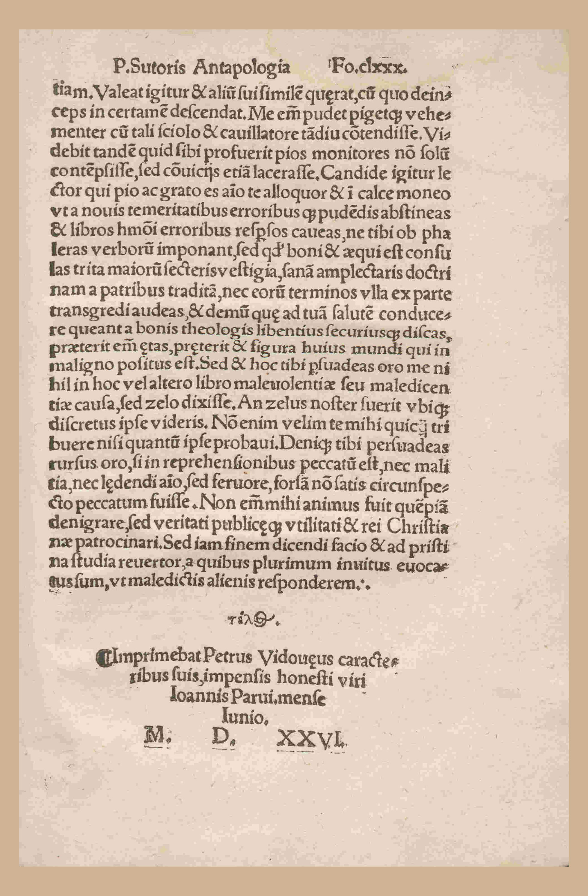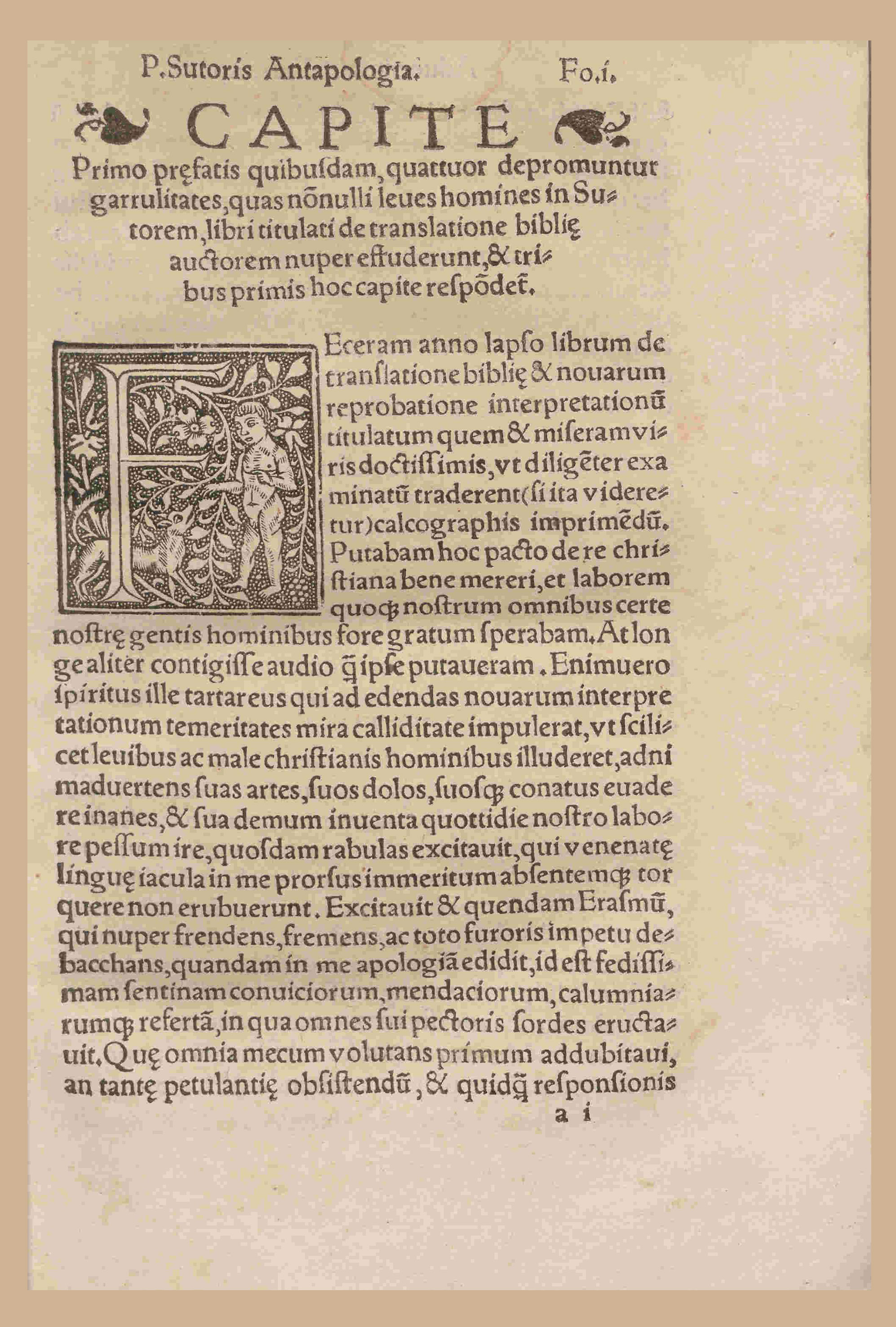 Portada de la obra Antapologia P. Sutoris, in quandam Erasmi Apologiam